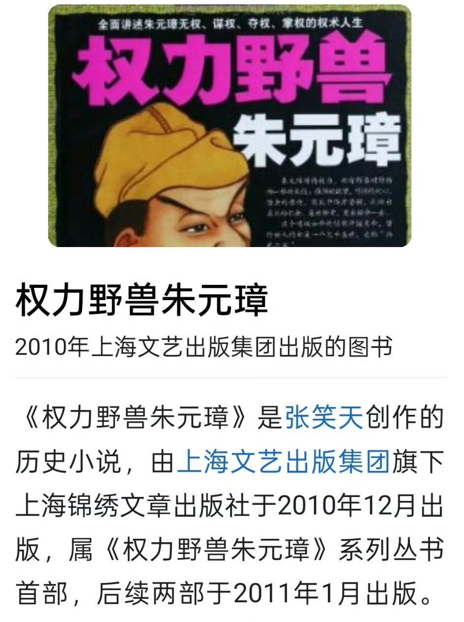 这样的书能出版,证明问题不在作者一个人身上。张笑天,吉林省萨满文化协会会长。作品《权利野兽朱元璋》、《夺权野兽朱棣》,封面都是露出獠牙的野猪形象。