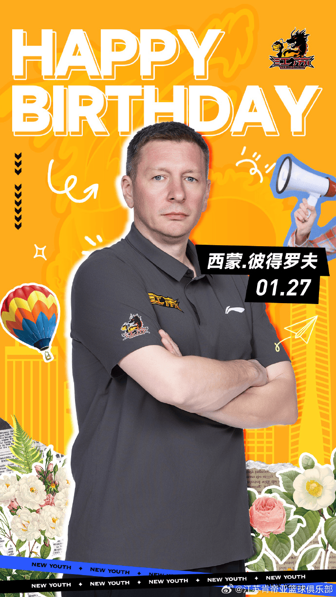 江苏男篮社媒发布生日海报:祝助理教练西蒙生日快乐
