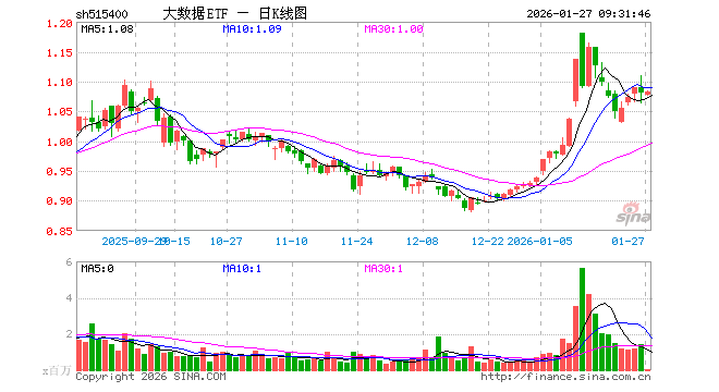 1月27日,大数据ETF(515400)开盘跌0.37%,报1.077元。大数据ETF(515400)重仓股方面,科大讯飞开盘涨0.48%,中科曙光涨0.02%,浪潮信息跌1.26%,紫光股份跌0.27%,恒生电子涨0.87%,润泽科技跌0.78%,拓维信息跌0.21%,深信服跌0.02%,中国长城跌0.93%,用友网络跌0.38%。
