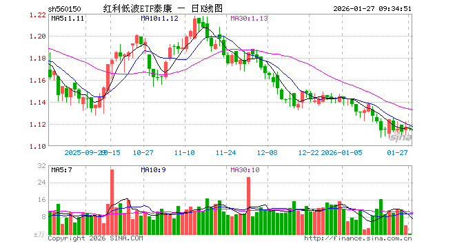 1月27日,红利低波ETF泰康(560150)开盘跌0.09%,报1.116元。红利低波ETF泰康(560150)重仓股方面,上海银行开盘涨0.11%,南京银行涨0.00%,平安银行涨0.00%,沪农商行涨0.00%,江中药业涨1.22%,陕鼓动力跌0.91%,民生银行涨0.00%,格力电器涨0.08%,中粮糖业跌0.47%,三维化学跌0.42%。