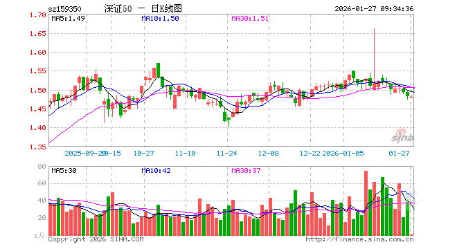 1月27日,深证50ETF富国(159350)开盘跌0.20%,报1.480元。深证50ETF富国(159350)重仓股方面,宁德时代开盘涨0.83%,中际旭创涨0.03%,新易盛跌0.28%,美的集团涨0.07%,东方财富跌0.13%,立讯精密涨0.43%,阳光电源涨0.21%,比亚迪涨0.04%,五粮液跌0.21%,北方华创跌0.44%。