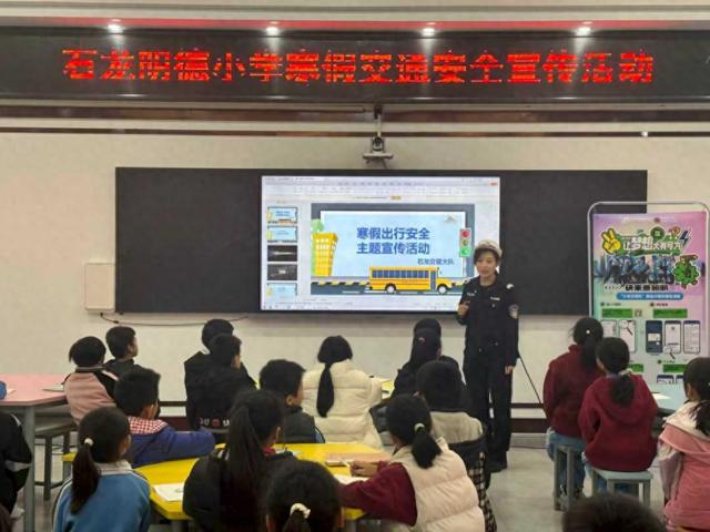 为增强寒假期间学生交通安全意识,提升其自我防护能力,1月23日,东莞交警石龙大队走进明德小学,开展寒假出行安全主题宣传活动。
