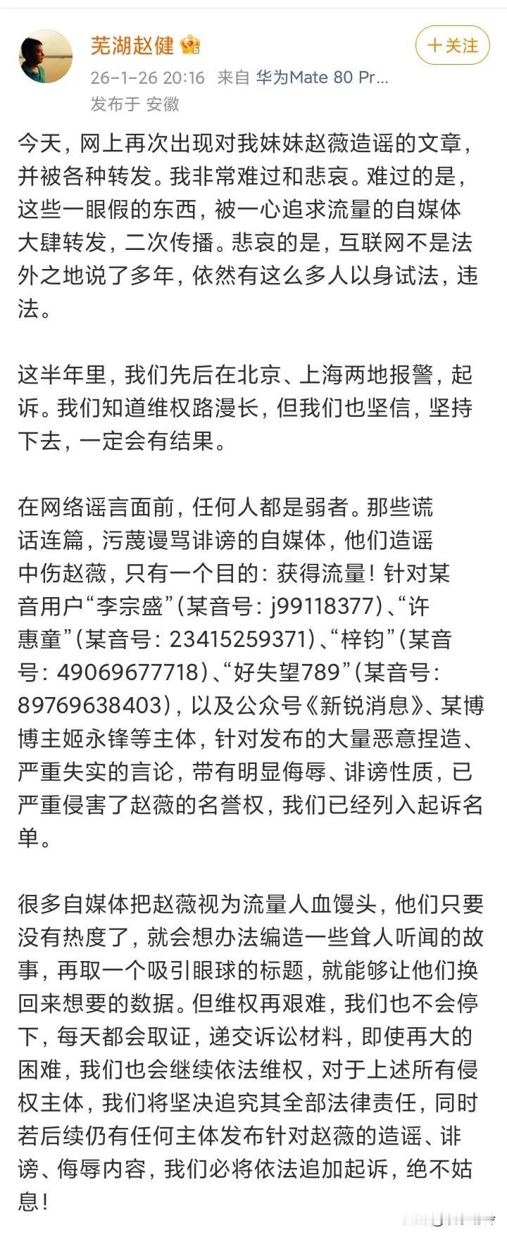 忍无可忍了,李湘的前夫和大眼睛格格的哥哥都出来辟谣了,态度非常强烈!前夫哥说网友都是在胡说八道,格格哥说自媒体都是在以身试法,两人的态度都十分强烈,都表示不再忍了,会采取法律手段,大眼睛格格甚至本人亲自在评论区留言:一直在起诉中! 说实话,能彻底化解流言的只有真相,毕竟能达到全网被禁止关注和彻底退隐的程度,一般是问题相当大了,至于是什么问题没必要讨论,不说不公布肯定是有原因的,也许是完整的真相还没彻底查清,也许是其他我们想不到的原因,也许是我们把问题想得过于严重了,但一定是有问题的。 如果完全没有问题自己选择这样做,那就是自己在故意炒作,这种不值得同情,受多少批评和诋毁都是自找的!