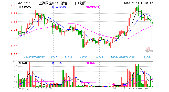 1月27日,截止午间收盘,上海国企ETF汇添富(510810)跌0.62%,报0.955元,成交额584.44万元。上海国企ETF汇添富(510810)重仓股方面,中国太保截止午盘涨3.23%,国泰海通跌0.85%,上海机场跌0.13%,上海电气跌2.95%,浦发银行涨0.10%,上海银行涨1.51%,张江高科跌1.50%,华域汽车跌0.74%,上汽集团跌1.51%,中微公司涨3.68%。