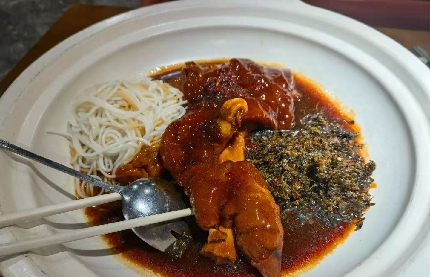3️⃣.红烧肉烧白,大块的红烧肉烧白,蒸制而成,肉的香气与梅干菜好吃