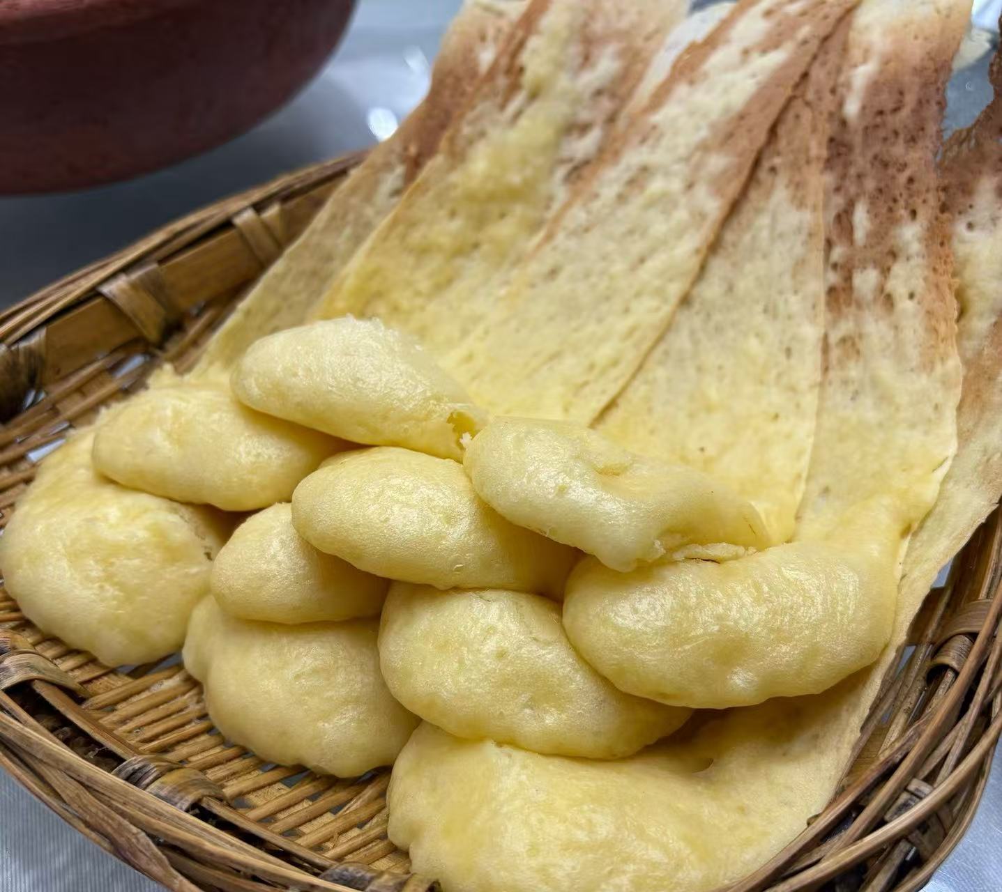 2️⃣.锅边馍,纯粮制作,吃起来外酥里软,搭配着锅里的菜一起吃。