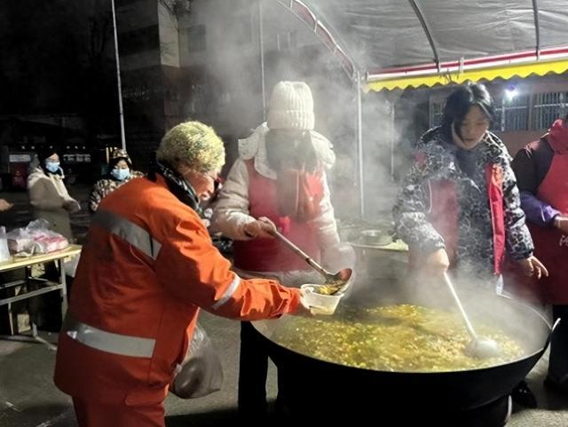 瑞光社区则联合周至县总工会,发挥部门联动优势,提前一周策划筹备,党员干部带头冲锋,志愿者主动补位,不仅在小区广场为居民、环卫工发放热粥与慰问品,更心系特殊群体,组建上门服务队,将温暖精准送达每一个需要关怀的家庭。