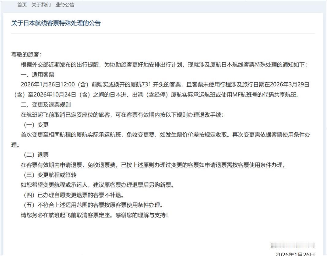 2026年1月26日下午,国航、东航、南航几乎同时发布重磅通知——中日航线免费退改签政策将从3月28日延长至10月24日,直接覆盖樱花季、暑假、国庆和红叶季。 在这个出行不确定性高涨的当口,三大航的集体行动,不是凑热闹,而是一场有章法、有预判、有谋略的“市场疏导”。一句话:你担心什么,我就先替你解决什么。这背后,是一场中日航线上的攻守转换,是一轮航空市场的博弈重启。 2025年整个冬季,对中日航线来说,可以说是“一个字:冷”。2025年12月,中国内地赴日游客同比锐减,免税消费缩水近四成。以往人声鼎沸的成田机场,如今连安检排队都成了“奢侈体验”。冷清的背后,是地缘与经济的双重风向突变,加上汇率波动、航班频繁调整,很多人干脆选择“等等再说”。 这种“等等”情绪,直接反映在航司的数字上。2026年2月,已有49条中日航线宣布暂停运营或取消全部航班,这不是简单的航线优化,而是供需双双下滑的结果。旅客观望、航司缩线,形成了一个微妙的“谁先动”博弈。这个时候,退改签政策如果还卡得死死的,那就是把旅客往外推。 其实,过去几个月里,“退改难”已经成了旅客投诉的高频词。多家航司因退票手续费高、改签限制严、流程繁琐而引发舆论反弹。尤其是去年年底,某二线航司因取消航班却拒退手续费,引爆社交媒体,舆情一度失控。 有人说,免费退改签是“亏本买卖”。但从航司的算盘来看,这笔账不能只看眼前。空座率持续走高,航班飞出去一半空着,人工、燃油、时刻全都在烧钱。 如果政策不灵活,购票意愿会进一步下滑,那就不是少赚的问题,是连本带利都赔进去了。与其死守手续费,不如抓住潜在客源。“弹性运营”将成为后疫情时代航空公司的生存法则——三大航的此番操作,正是这个逻辑的现实落地。 更重要的是,三大航不是小公司,它们承担的不只是利润,还有品牌责任和行业风向。作为国有航司,它们的每一步政策调整,都不仅是市场行为,也是一种信号释放。 在品牌口碑日益重要的今天,能在旅客最关心的问题上让利,让人记住的不是退票,而是“你让我放心”。再者,大航司在资源调配上有天然优势,国内航线、国际航线之间可以做平衡,单条航线赔点,整体盘子还能转得动。这可不是中小航司能轻易模仿的。 从时机来看,这次政策公布的时间选得很巧。1月26日是腊八,春节临近,正是出行决策高峰期。很多家庭此刻在做计划,去哪、怎么去、订不订票,全靠这几天做决定。 三大航此时抛出“免费退改”的利好,直接打消一大批人“订了怕变”的顾虑。再往后看,3月28日至10月24日这段时间,正好覆盖日本旅游的四个高峰——樱花季、暑假、国庆、红叶季,基本把跨境旅游的黄金档全包了。 当然,政策也不是“无限慷慨”。三家航司都明确规定:首次变更免手续费,但票价差额要补,第二次变更就按规矩来了。这种“有条件的宽松”,既保证了旅客的灵活性,也防止了“羊毛党”恶意套现。可以说,规则设计得不偏不倚,该让利的让,该防的防,很有章法。 而这场政策风暴,会不会引发行业“骨牌效应”?答案基本可以肯定。除了三大航,中日航线还有不少玩家:山航、厦航、春秋航空,还有日方的全日空和日航。今年以来,香港航司也在中日航线上分流不少客流。面对三大航的“退改升级”,其他航司如果不跟进,可能会面临订单流失的风险。 事实上,过去几周,已有部分外航悄悄在做策略调整,比如提高改签灵活度、加大促销频率、优化退票流程。这说明三大航此举,不只是自救,更是行业重塑的导火索。只要这场“良性竞争”能持续下去,中日航线的乱象,比如“特价票不退不改”、“霸王条款”等问题,或许真的能迎来一次系统性清理。 三大航用这一招,把旅客的焦虑“托底”,也为自己争取了喘息与重构的空间。在不确定性成为常态的时代里,真正考验企业的,已不仅是服务能力,更是预判力与应变力。 国航、东航、南航、厦航集体通知:中日航线免费退改签延长到10月24日—— 2026-01-26 17:14:32 来源: 都市快报