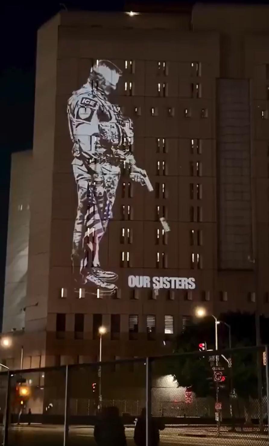 美国人也学了一招: 往ICE大楼墙上放投影!