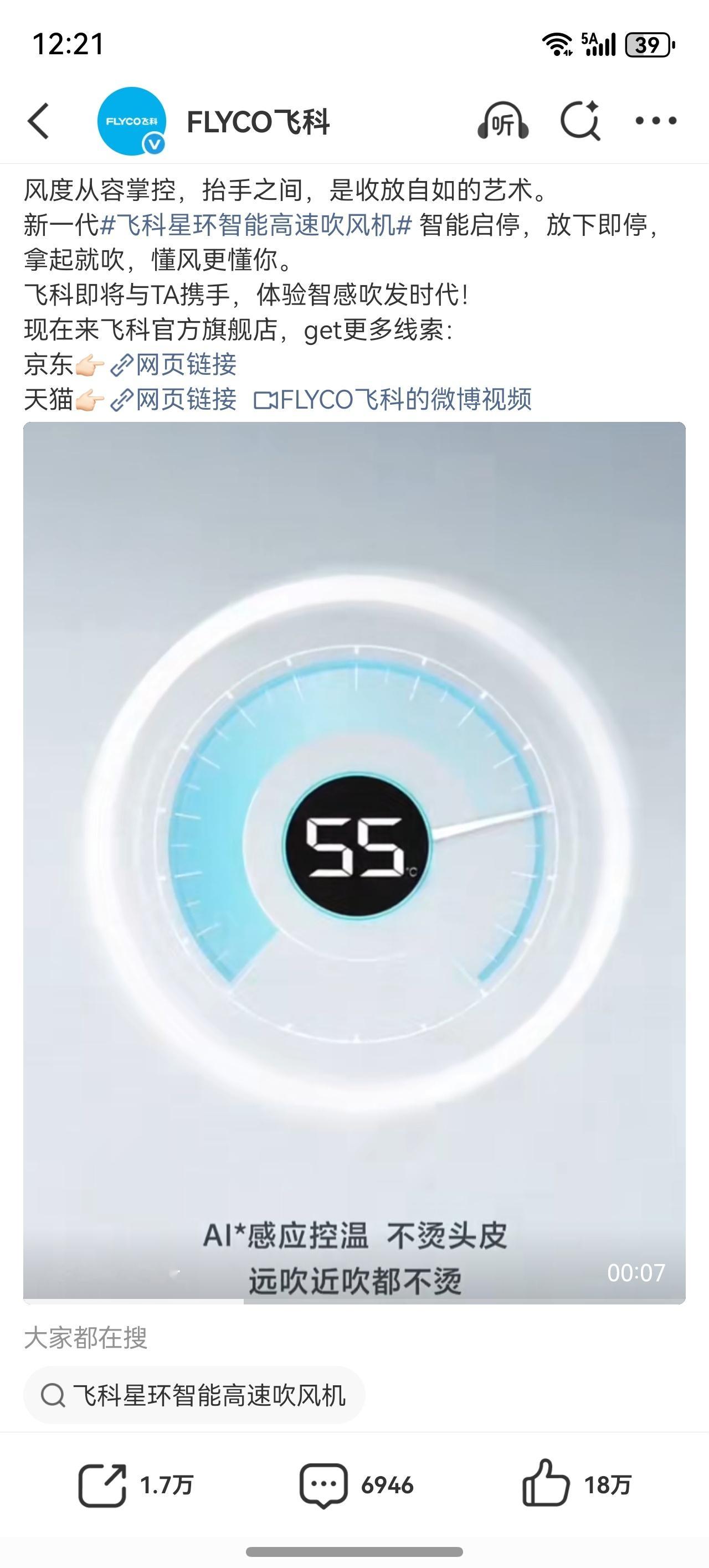 倒计时结束,惊喜正式揭晓!飞科携手王一博,即将开启智感吹发新时代~一眼沦陷这款即将登场的飞科星环智能高速吹风机,光看海报上的AI感应控温技术就已经狠狠心动~这种能精准掌控风温、无论远近吹发都不烫头的设计,同个姿势吹发停留7秒还能自动降温,简直是为我们这些头皮敏感发质受损人量身定做。在我看来,这不仅仅是产品的升级,更是一场关于“智慧与温度”的全新探索,不愧是酷盖pick的科技感,连吹风机都透着满满的未来感~当然啊,飞科的看家本领往复式便携剃须刀F8也同样出彩:弧面刀网紧密贴合面部轮廓,剃须干净又快速,全程清清爽爽零拉扯,从“头”到“脸”的精致呵护,飞科用黑科技给你安排得明明白白~最酷顶流遇上懂生活的飞科智能科技,让每一次日常打理,都能成为愉悦又高效的享受。飞科这款联名礼盒,更是将智能生活的美好具象呈现,坐等发售,我也要入手解锁这份精致体验!飞跃科技博出精彩