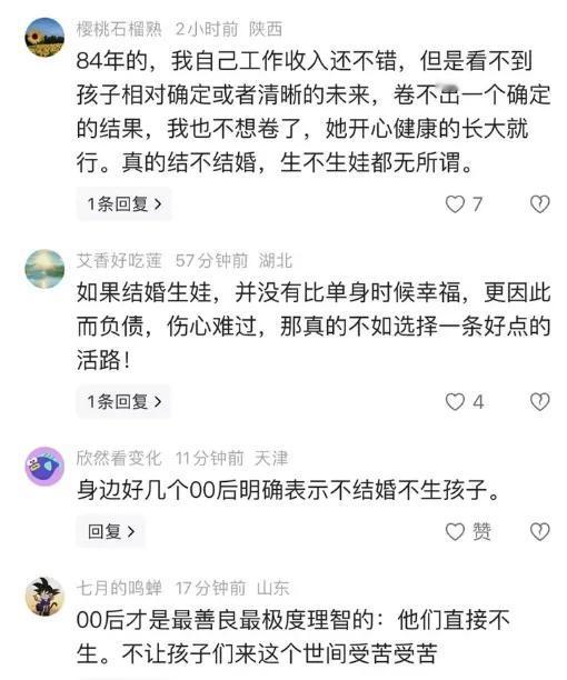曾扛着房贷鸡娃,信“多子多福”的80后,如今也是被捶的集体松口...将来最好不要结婚,你开心比啥都强! 为啥反转?养娃成本几十万起步,职场996成常态,女性生育就是职业断崖…他们自己咬牙蹚过激流,怎忍心推孩子下水?数据更扎心!超半数年轻人不想结婚不想生。 这不是“躺平”,是爱的升级!当年他们把“都是为你好”活成了苦难KPI,如今悟了!幸福不是流水线产品,婚姻是锦上添花,不是雪中送炭的义务。一句“随你心意”,藏着半生血泪换来的通透。真正的负责,是尊重选择,而非捆绑人生。 父母用皱纹换来了对我们的温柔,他们不是不信婚姻,是太懂风雨。为这份清醒点赞! 当传宗接代让位于你值得快乐,社会才真正走向成熟。爱,从来不是复制粘贴,而是目送你飞向自己的晴空。