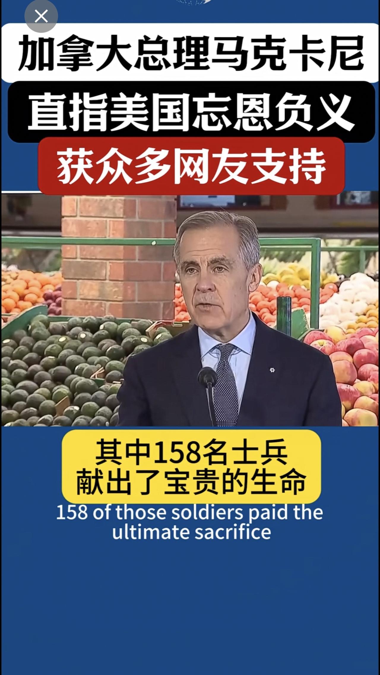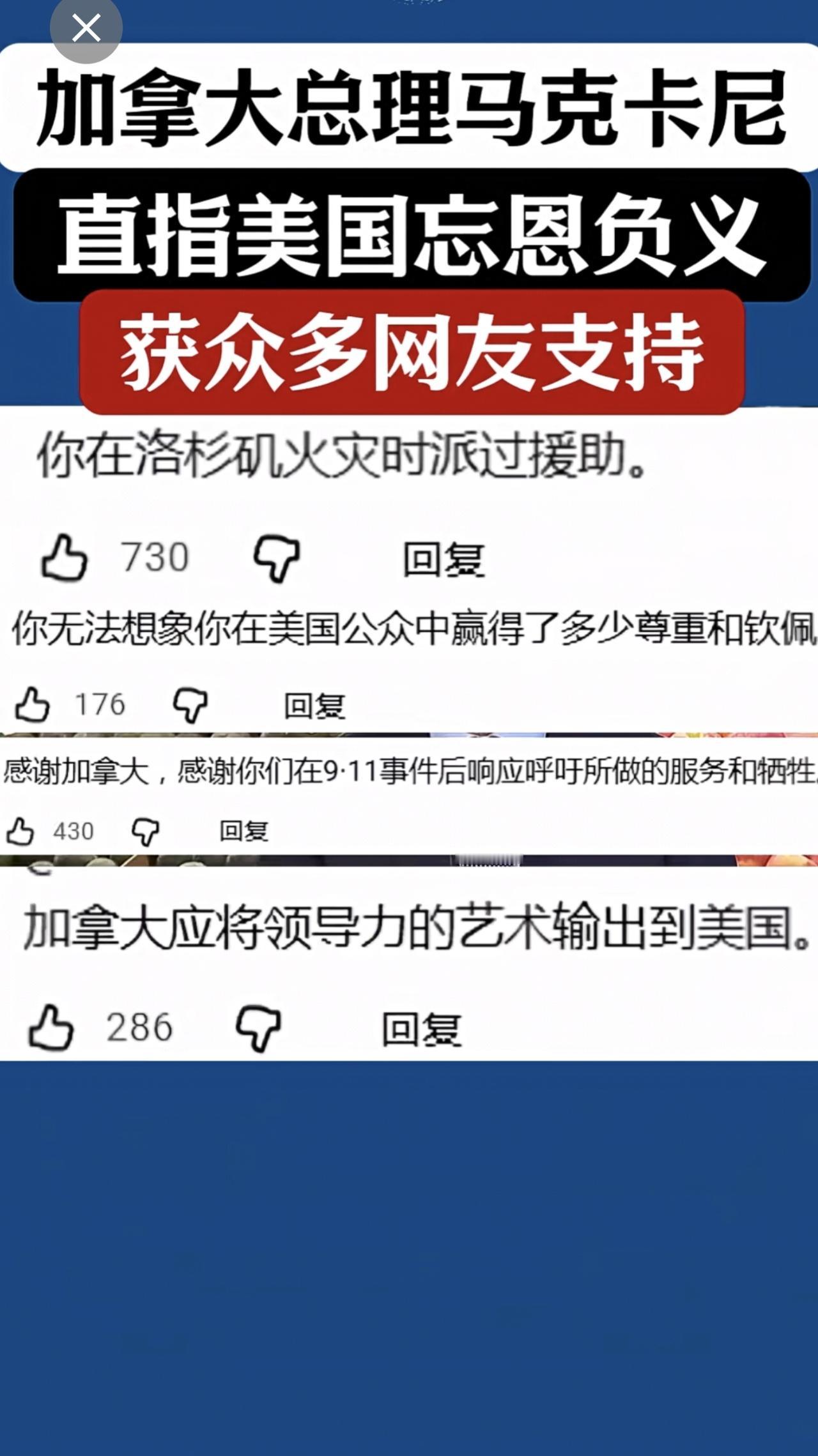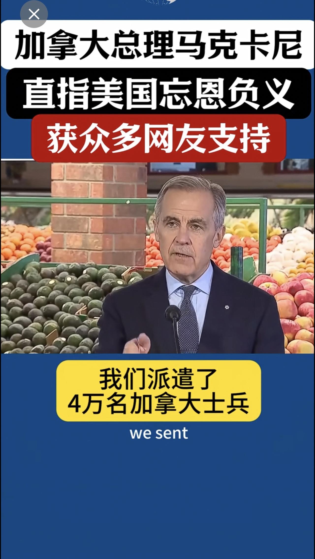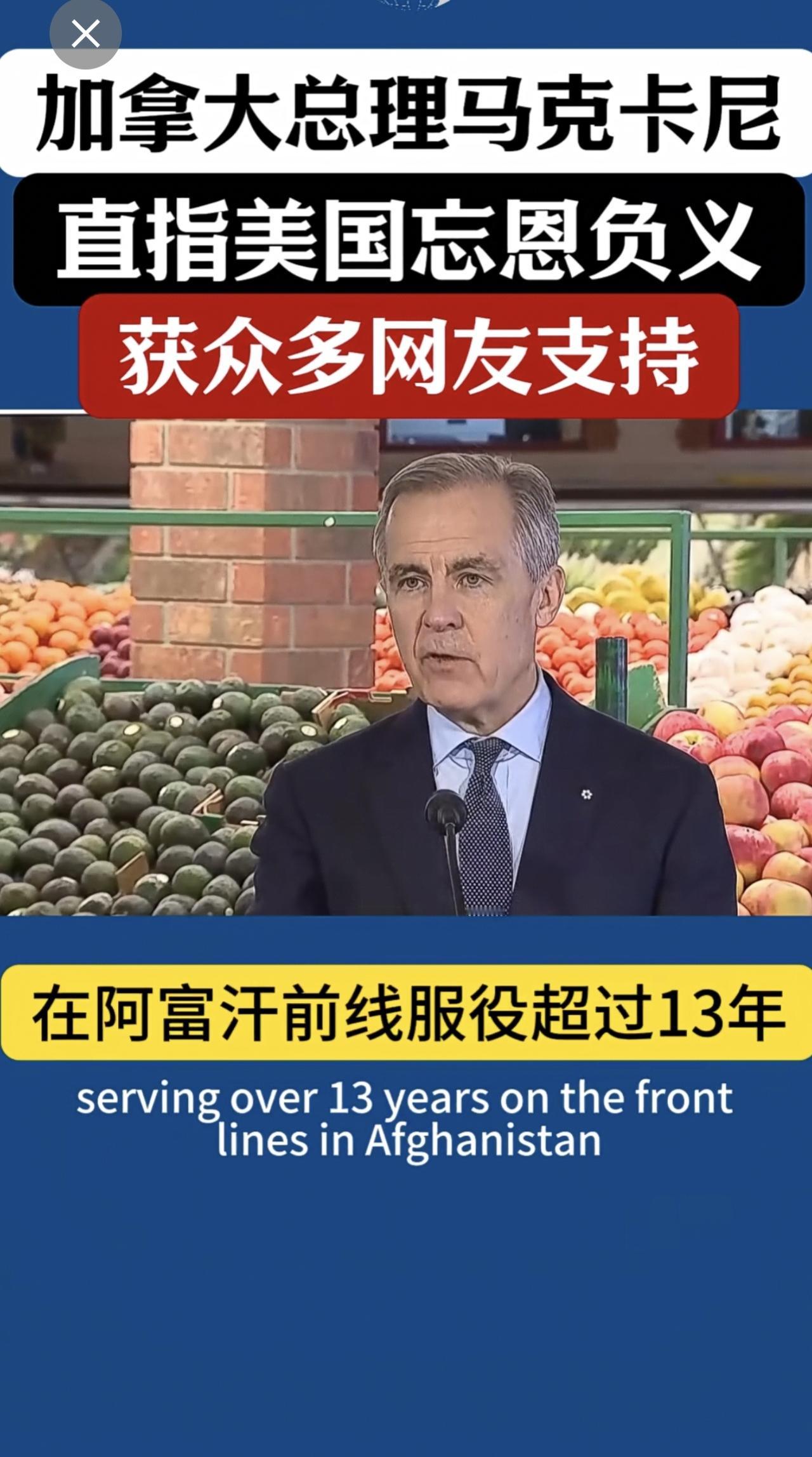 加拿大总理马克卡尼,直指美国忘恩负义。