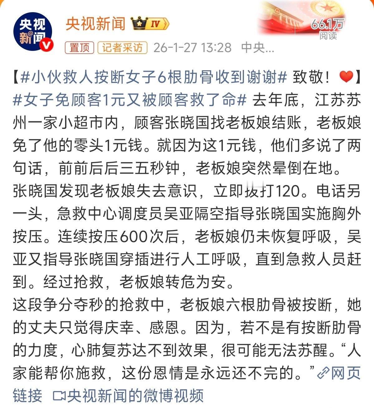 小伙救人按断女子6根肋骨收到谢谢先保命哪顾得上这些!善良的人遇上明事理的一家人,