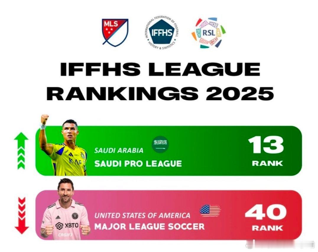 IFFHS已经取得了世界最佳联赛的排名。🇸🇦沙特职业联赛(1️⃣3️⃣)🇺🇸MLS(4️⃣0️⃣)他们对美国业余联赛的营销很慷慨,因为现实并不比危地马拉联赛好。自从他36岁以来,他在世界第40个联赛中打球..🤣🤣梅西c罗