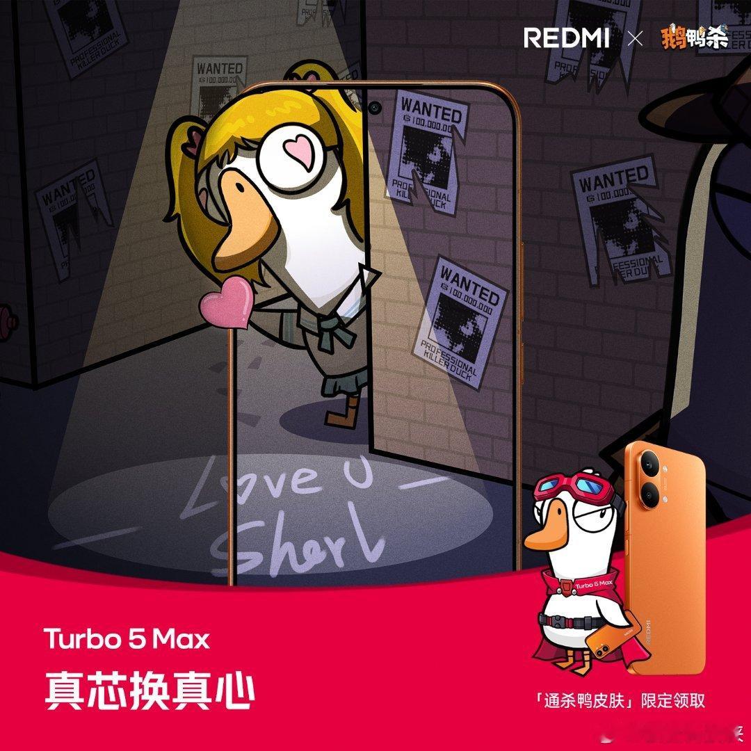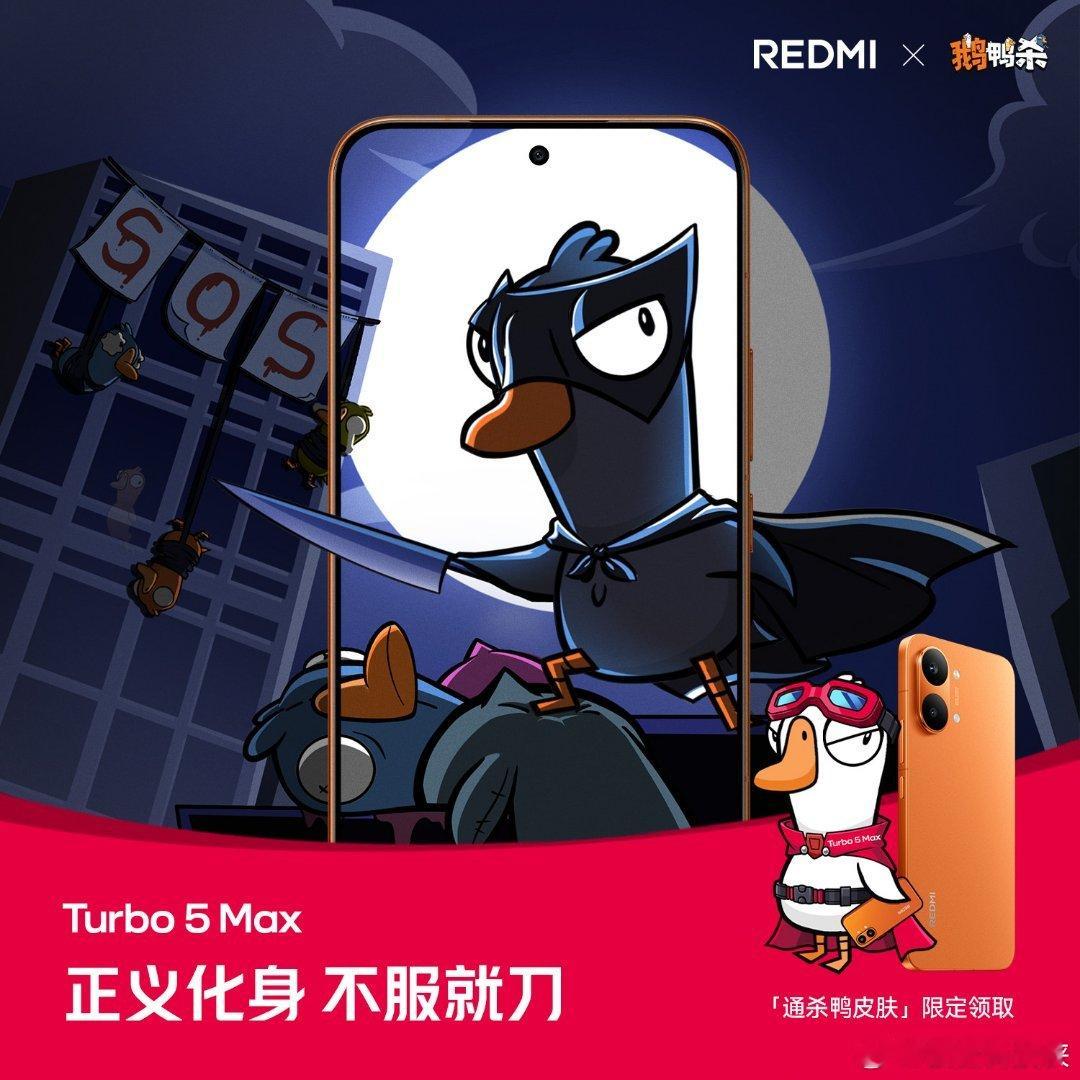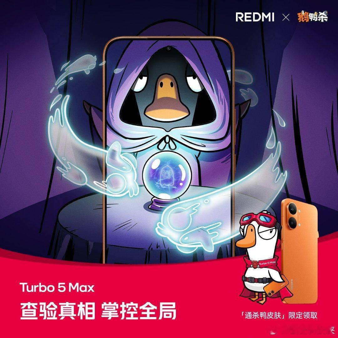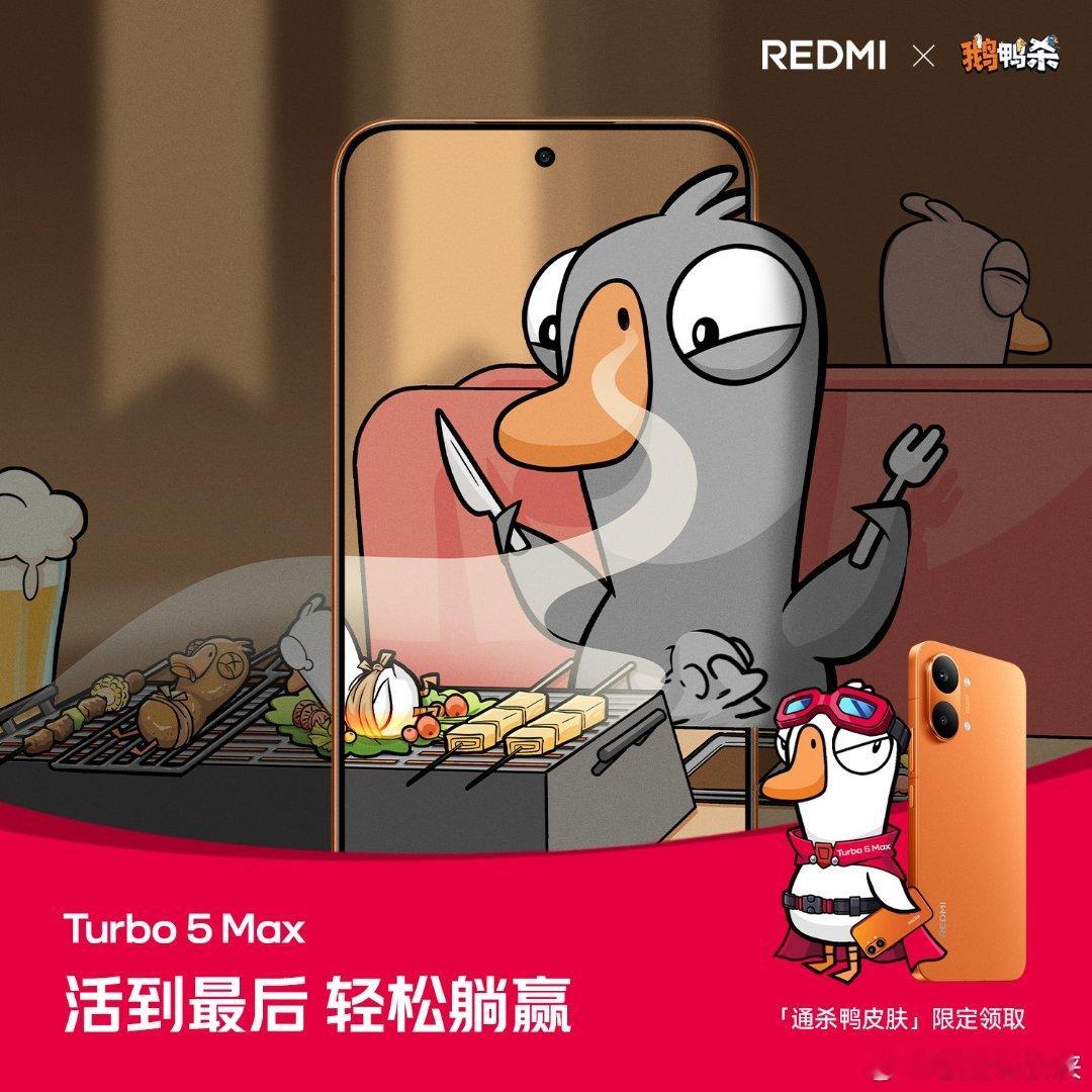 快看!用 Turbo 5 Max 组局鹅鸭杀妥妥杀两天,出刀就是快!全国 2000 家小米之家 1.27-1.29 限量领取「通杀鸭」皮肤周四晚 7 点,Turbo 5 系列新品发布!Turbo5MaxREDMI