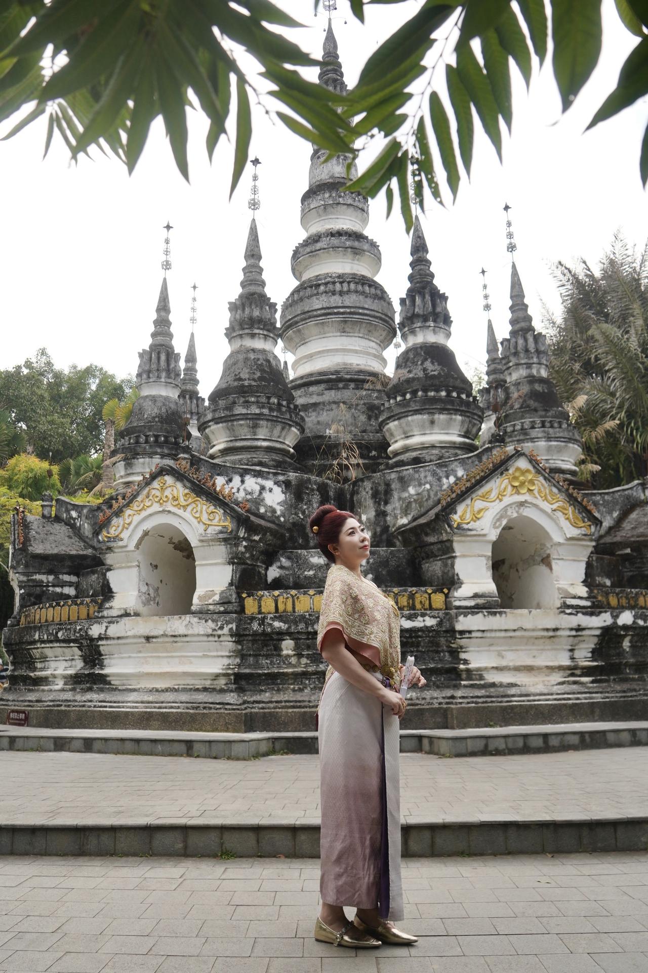 第一站来到曼听公园,满眼的金碧辉煌和郁郁葱葱好治愈呀~风是暖的,带着热带植物特有的、微甜的呼吸,轻轻拂过脸颊。这里是西双版纳,1300年前曾经的傣王御花园,每一片叶子都像含着未说完的故事。 沿着湖畔慢慢走,看千年古榕淡然垂落,看睡莲在池面上静静摊开掌心。阳光透过层层叠叠的树叶,碎成晃动的光斑,两旁的贝叶棕仿佛镀上了金边,佛塔与旧日宫廷交相呼应。不可免俗,做了为妃做傣的服化道,加入写真大军。 📷路线:傣王行宫-红塔城堡-白塔-大地女神洗手池-叶子花园-城心塔-游船码头 公园内一步一景,自然环境秀丽,500多株古铁刀木林、热带兰圃,以及三角梅、龟背竹、菩提树等植被是大自然的馈赠,也是拍照的背景板。如果有兴趣:可以蹲下上午的傣王出行,和晚上的澜沧江·湄公河之夜”歌舞,这样人文和自然就都有了。也可与隔壁总佛寺,一并参观游览。 🌸曼听御花园 🎫40元 ⏰️开放时间:8:00-17:00 🪞门口有很多旅拍店和租赁服装的店