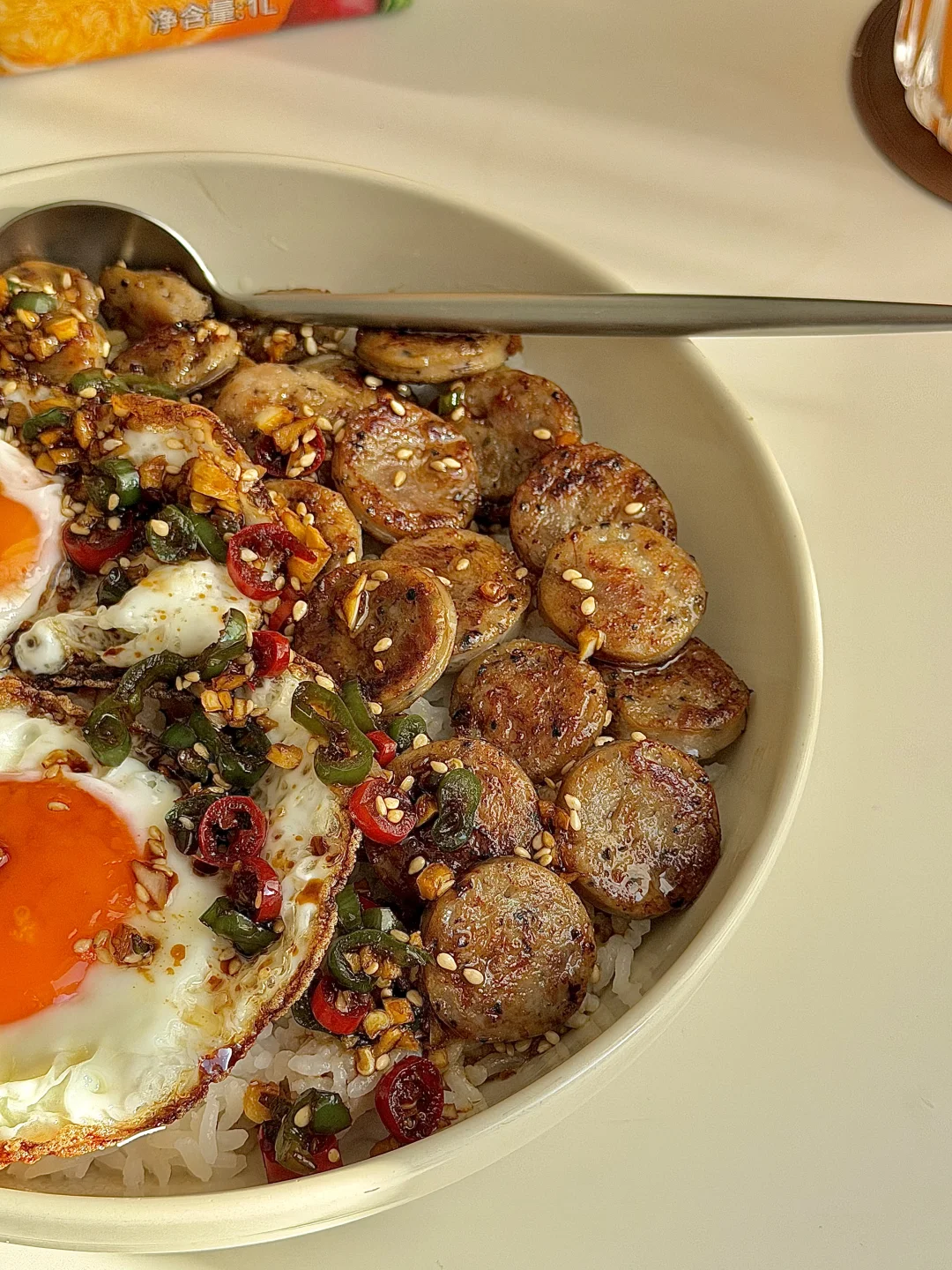 一个人的干净饭🍊香肠煎蛋盖饭&健康橙汁