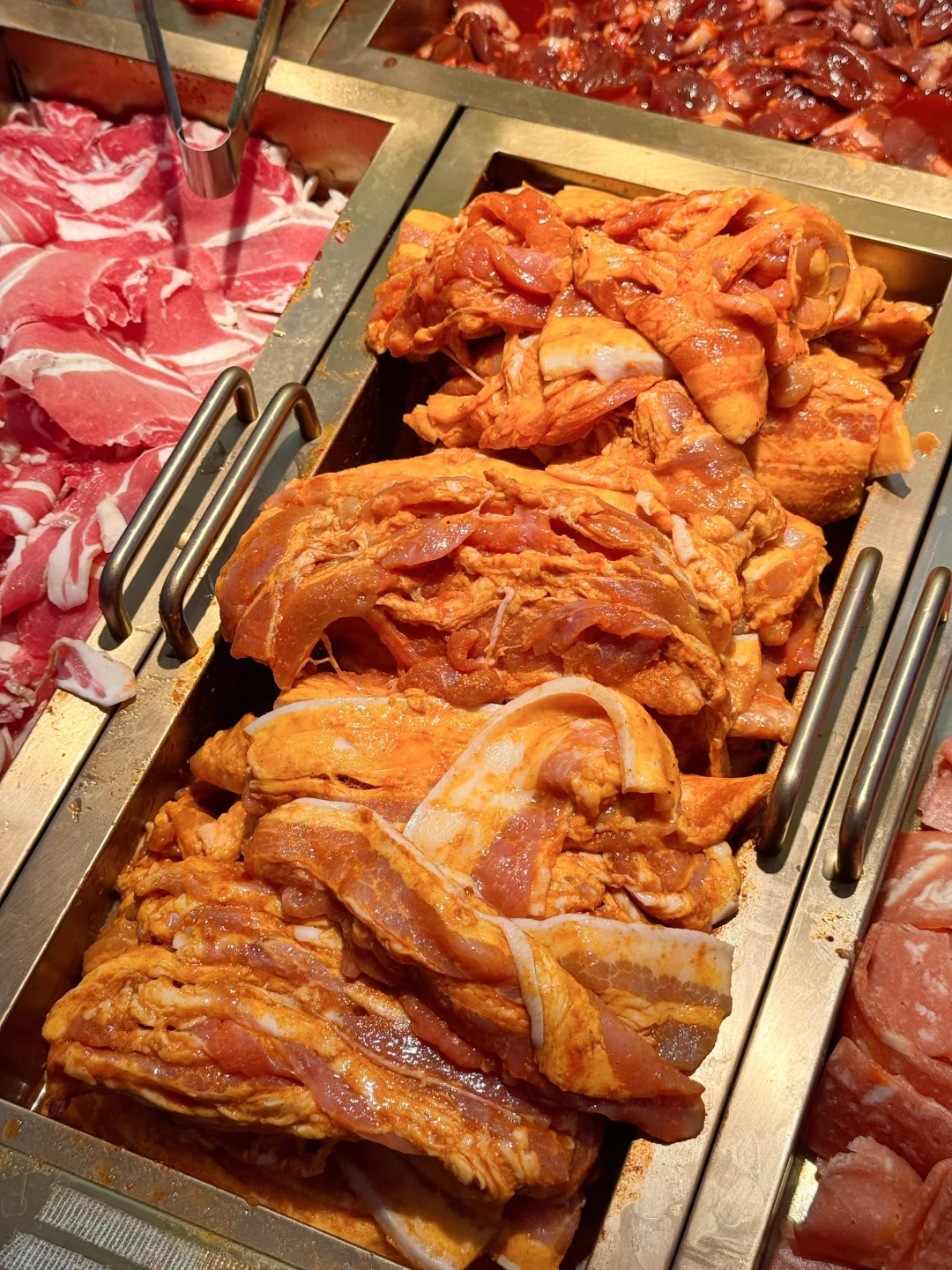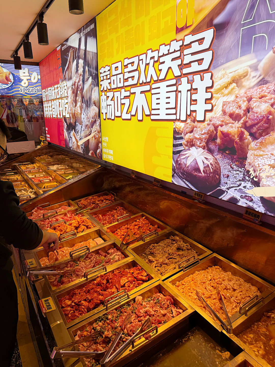 谁懂啊!密云万象汇挖到的喜三胖自助烤肉,百元内直接实现吃肉自由,肉食星人狂喜到跺脚! - 原切肥牛、黑椒牛肉粒堆得满满当当,烤盘上烤到滋滋冒油,裹上生菜+蒜片+辣白菜,一口下去香到迷糊~ - 重点是居然有能看动画片的座位!边炫肉边追番,带娃党直接解放双手,闺蜜约会也超有氛围感~ - 店里还有韩式炸鸡、辣炒年糕、鲷鱼烧,甜品饮品全不限量,漫画墙布景随手拍都是韩系画报感~吃完身上还没油烟味,赶紧冲,晚了怕是要等位咯