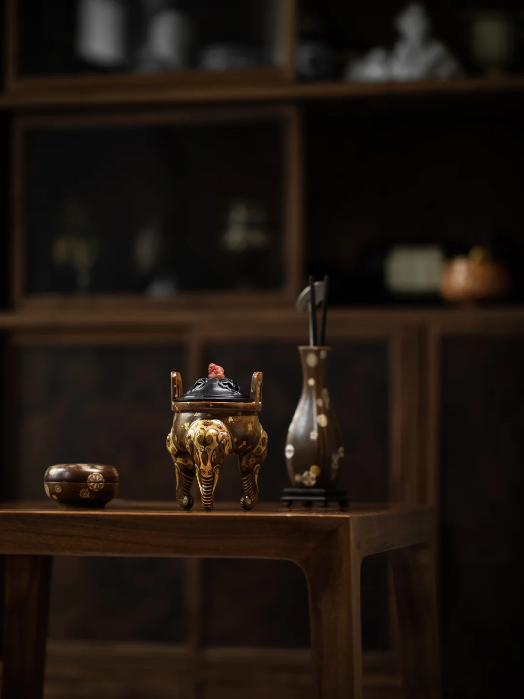 三象拱立,托起鼎盛之形。炉膛深阔,实用百搭。它器宇轩昂,置于客厅或书房,是空间里不言自明的气度担当。