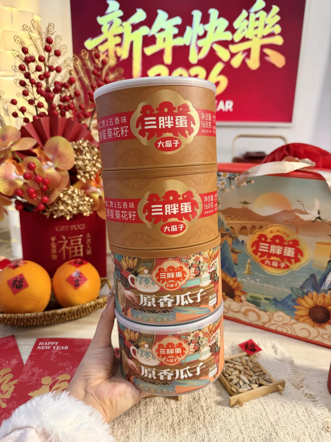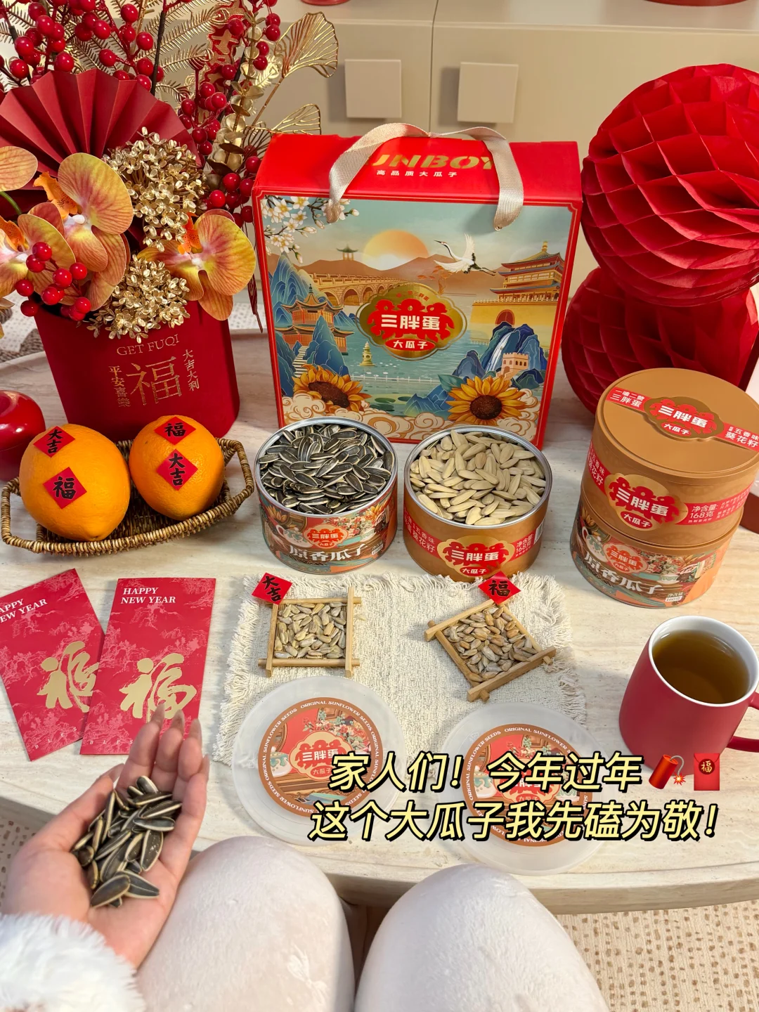 🪭我家每年必囤的年货就是三胖蛋瓜子,颗颗饱满大颗又好吃!而且他家今年的国潮包装超喜庆的~