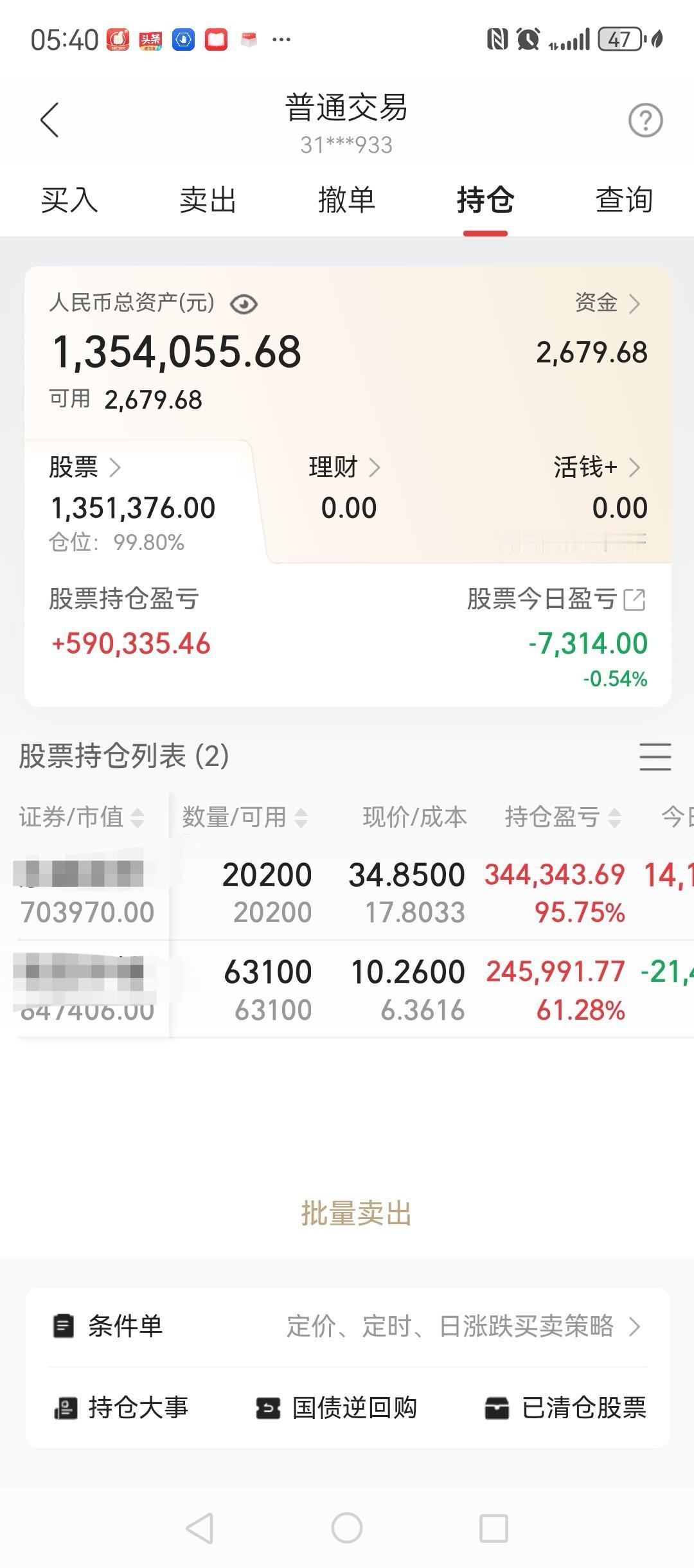 今年以来,还不到一个月,收益率是26%. 手中两个股票,其中人形机器人板块中个股持有时间一年多,接近翻倍。另外一个稀有金属板块的股票持有4个月左右,收益率达到61%。 目前两个股票都处于主升浪过程当中,箭在弦上,不得不发。 2024年之后,我的投资理念就一句话,好价钱买入好股票,不赚钱不卖,甚至不赚大钱不卖。