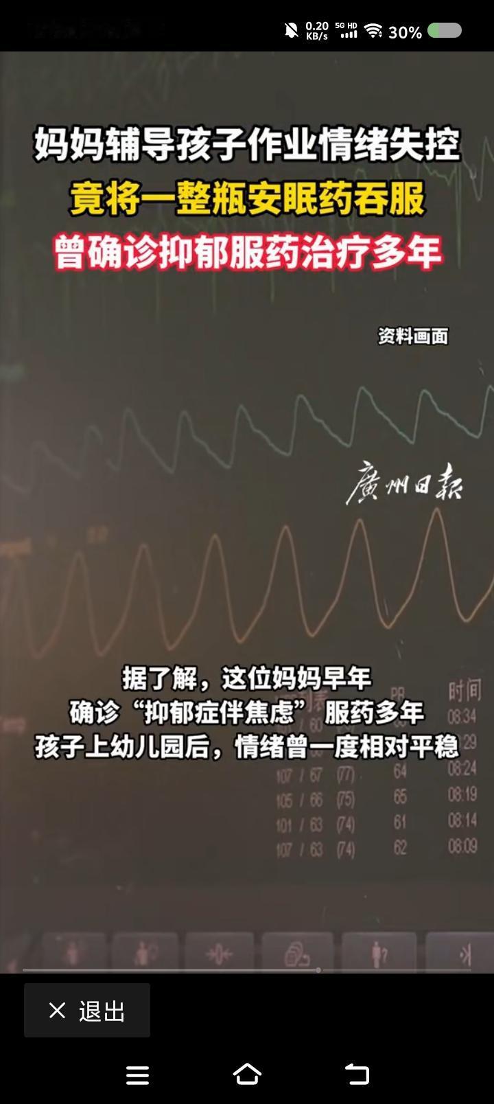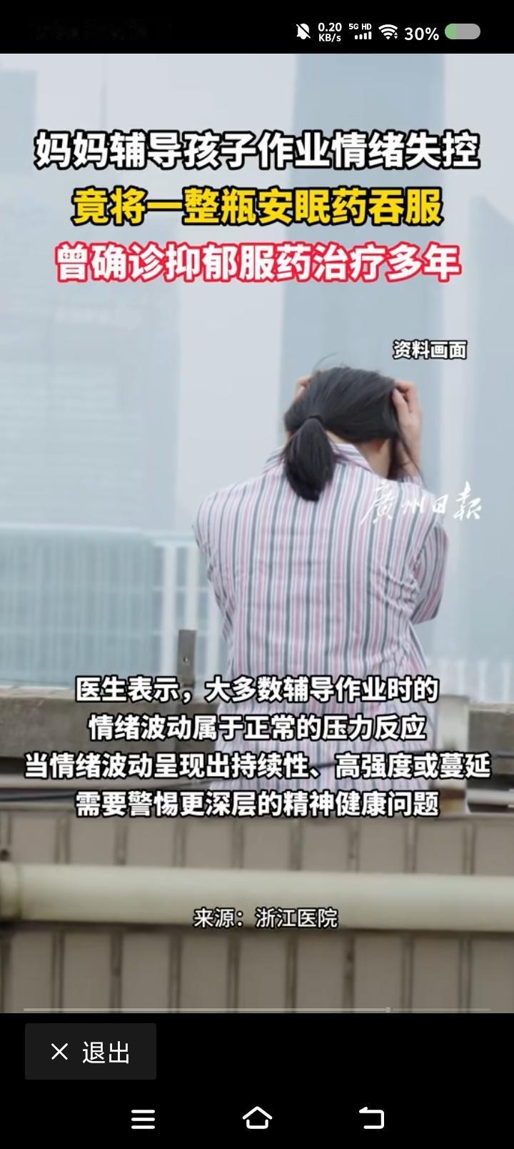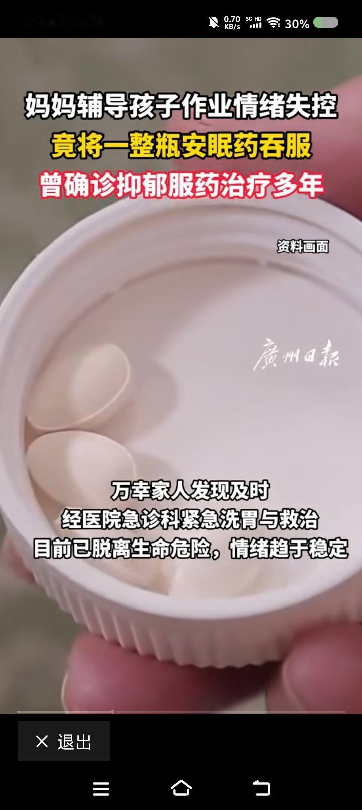 谁来保护抑郁症的孩子?—— 据报道,一女子辅导孩作业,因孩上反复学不会一道题,女子情绪激动,吞下一瓶安眠药,幸亏救治及时。此女子早年确诊抑郁症伴焦虑症,服药多年。 点评: 监护人自身不健康,尤其是心理方面欠佳,如何教育好孩子,如何保护孩子? 建议有关部门与孩子的父亲交流,让他多承担教育方面的责任;与孩子交流,看是否需要心理辅导。