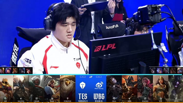 TES:上单369、打野naiyou、中单Creme、下路JiaQi、辅助Fengyue
