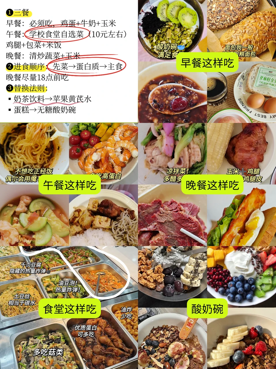 ❷进食顺序:先菜→蛋白质→主食,晚餐尽量18点前吃