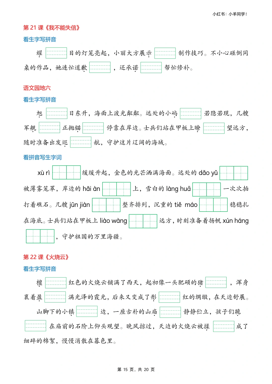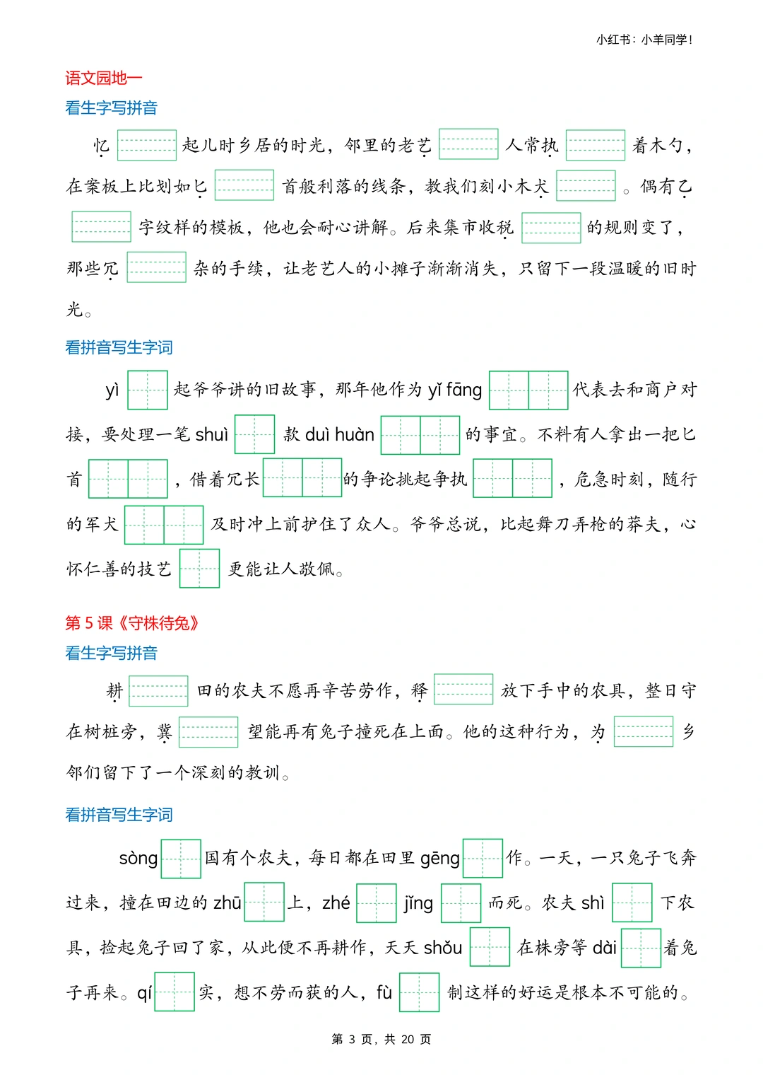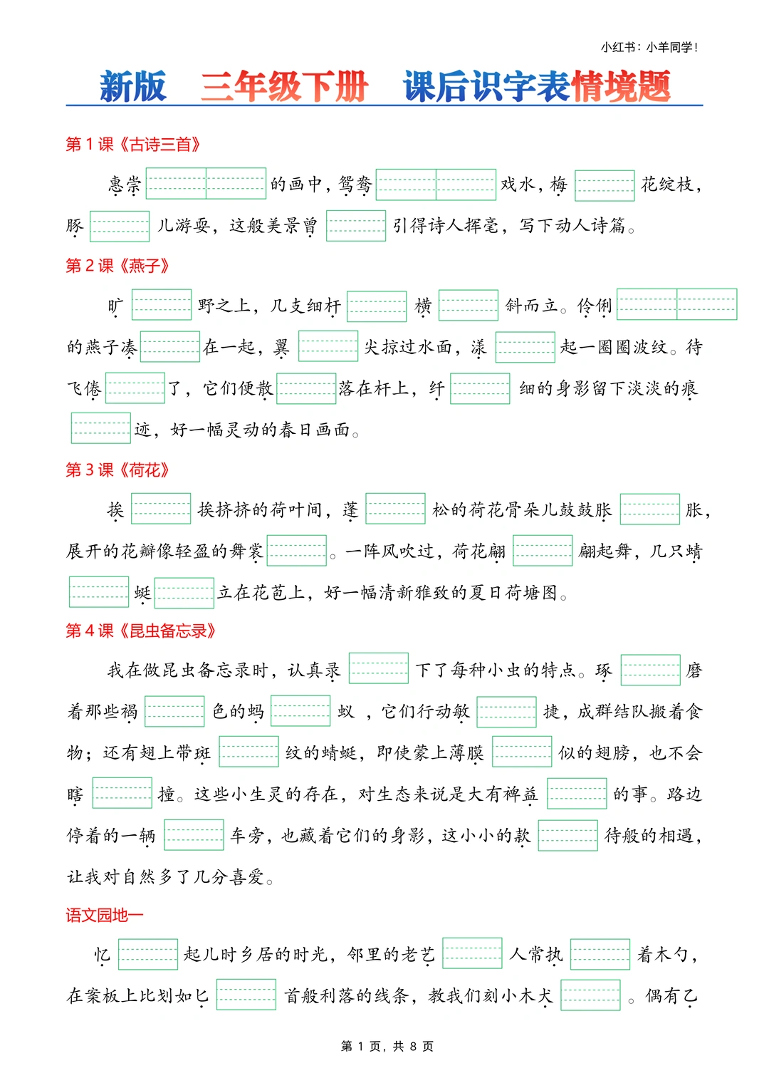 1⃣ 不仅可以练习课后生字词,还可以根据“短文”练习写作。