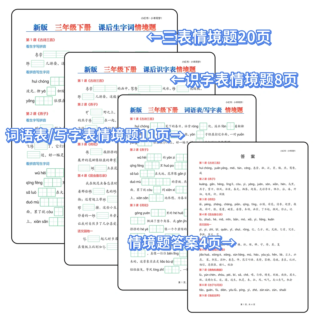 ✅很多家长反馈之前的版本小孩子会看下面的“看拼音写词语”的内容写上面的“看生字写拼音”,这次小羊贴心准备了三个排版,完美杜绝这个问题,家长或老师有选择性的打印!!