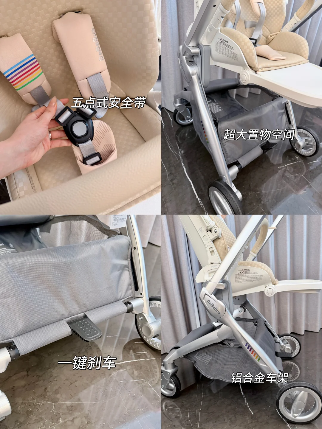 经过我的层层筛选最后选择了 bebebus的艺术家pro婴儿车!当然我也是颜控 这香槟色老钱风太有格调了~