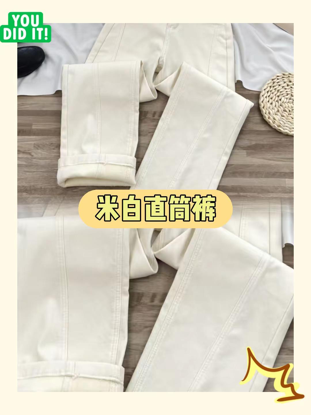 奶白色加绒牛仔裤超赞😎。奶白色加绒牛仔裤简直美炸啦!今年秋季新款,米白色直筒高