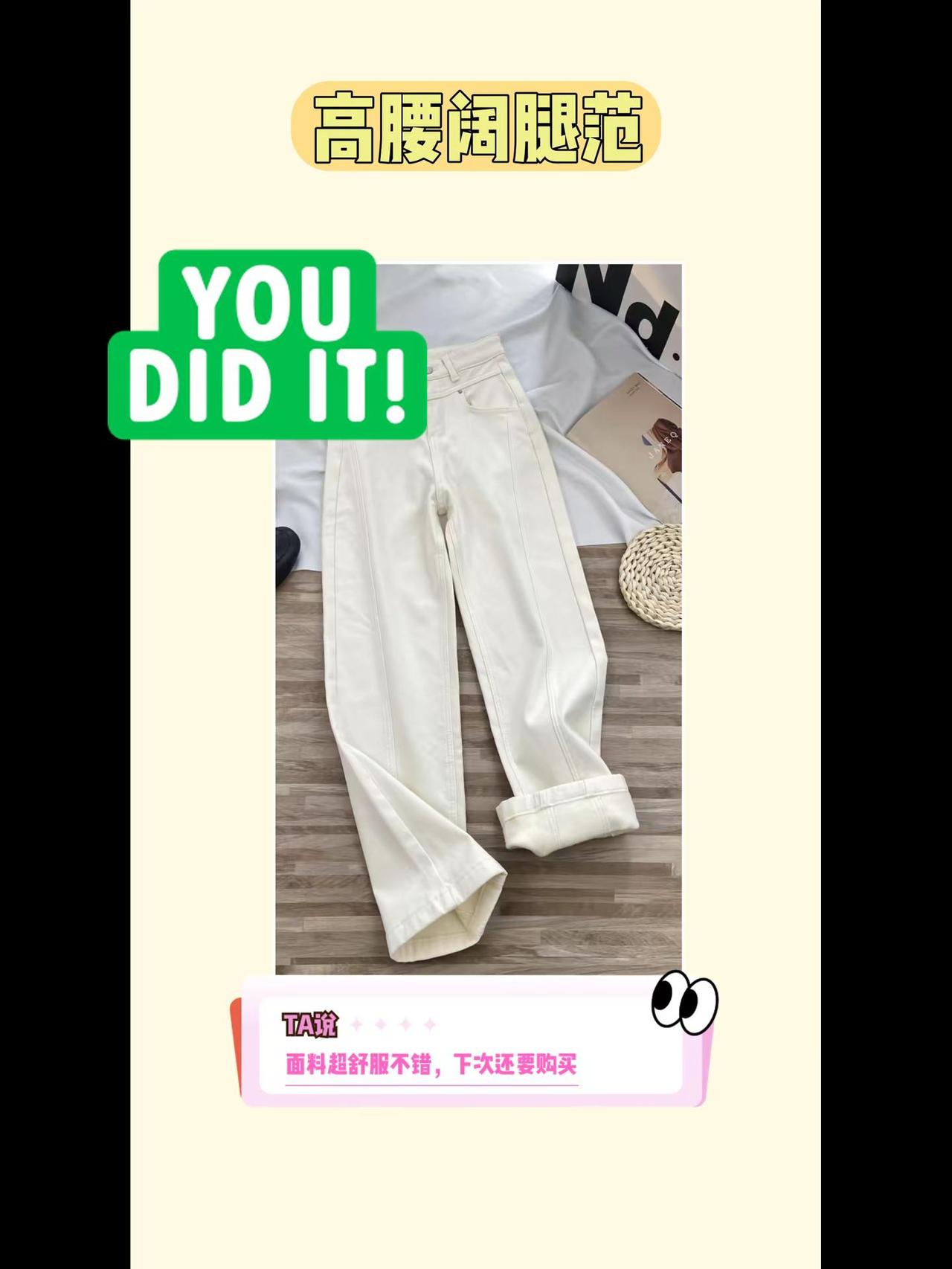 奶白色加绒牛仔裤超赞😎。奶白色加绒牛仔裤简直美炸啦!今年秋季新款,米白色直筒高腰阔腿设计,超显腿长。加绒有弹力,舒适又时尚,姐妹们冲!冰红茶为你而来