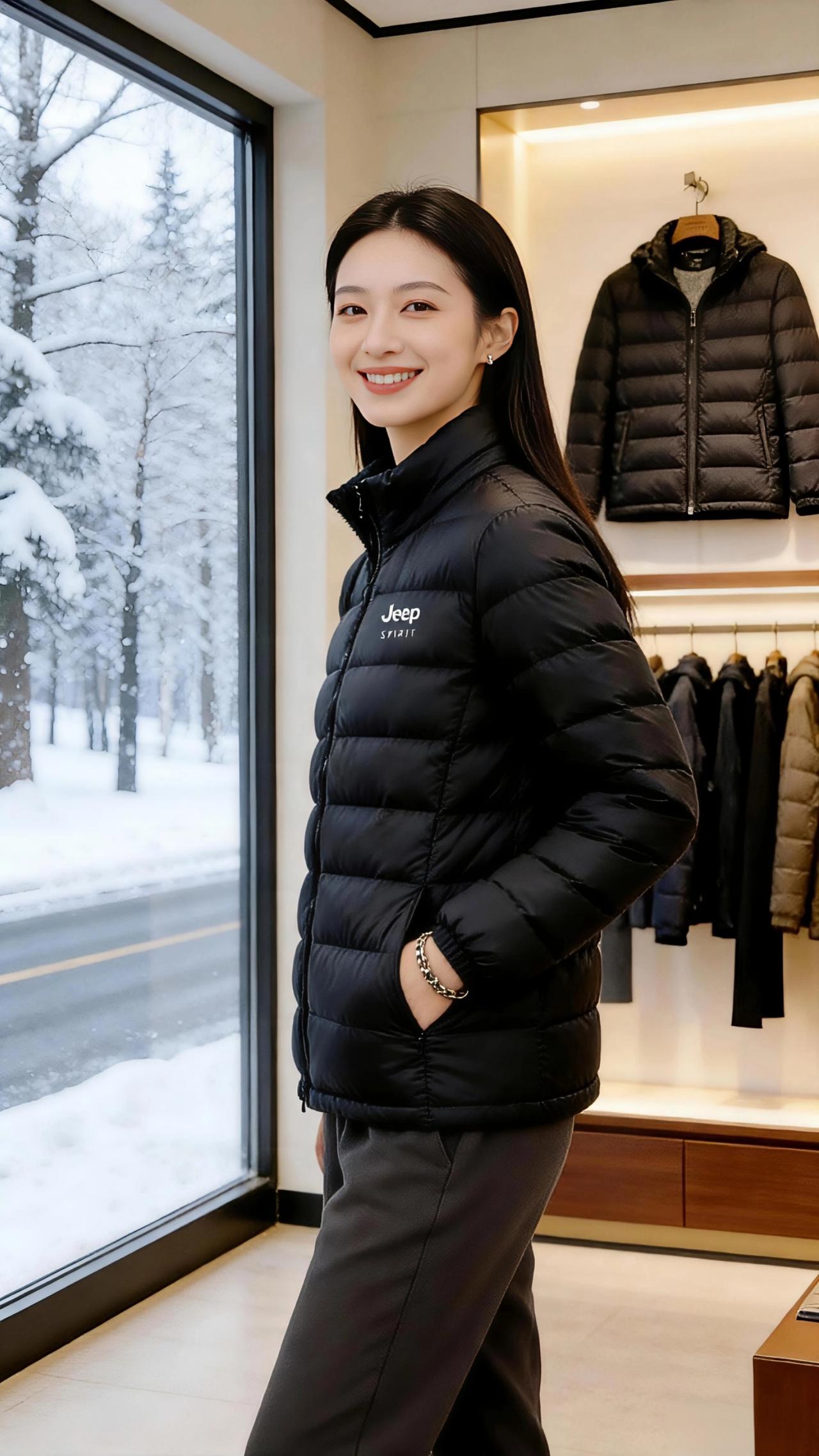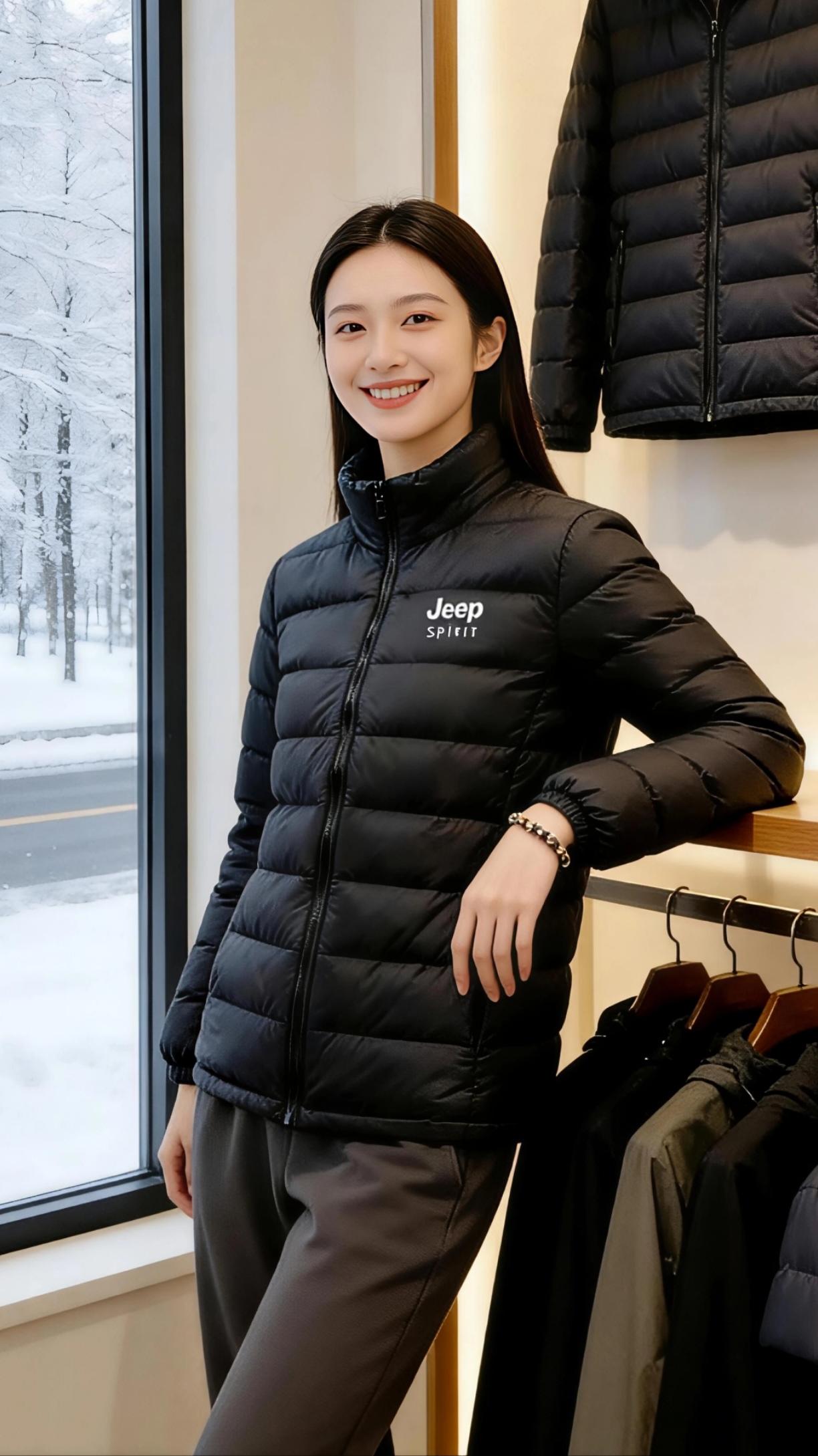 雪落衣间 当窗外的雪絮簌簌漫过松枝,把整条街酿成一幅素白的画,试衣间的暖光恰好漫过黑色的羽绒服。 它安静地伏在肩头,像一片温软的云。细密的衍缝里,藏着Jeep SPIRIT独有的硬朗与温柔。指尖抚过立领的弧度,就像触到冬日里不肯妥协的风,却又被内里的蓬松妥帖接住。 模特倚着木质衣架站定,衣摆垂落的弧度与窗外的雪线遥遥呼应。羽绒服的黑,是雪地里最沉静的注脚,它不与冬雪争白,只以轻韧的姿态,为奔波的人拢住一身暖意。 当她把手插进衣兜时,金属拉链轻响,似在应和远处雪粒敲打玻璃的细碎声响。这不是一件用来炫耀的华服,更像一位默契的老友——陪你走过被雪水打湿的街,也能接住你在寒风里呵出的每一口白气。 暖黄的灯光漫过衣身,把蓬松的纹路揉成温柔的光影。原来最动人的冬日,从不是躲在温室里看雪,而是穿着这样一件轻便的暖衣,坦然走进漫天风雪里,让寒冷只成为风景,而温暖,才是贴身的日常高级感穿搭 新年穿搭 冬季穿搭 羽绒服