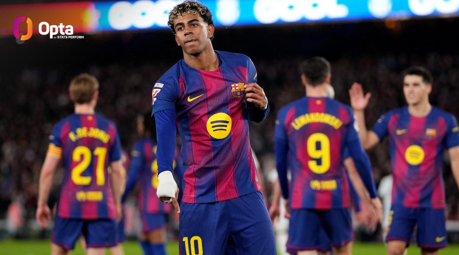 虎扑01月27日讯OPTA数据网站统计了五大联赛本赛季截至目前的过人次数榜单,其中来自巴塞罗那的前锋拉明-亚马尔以94次过人断档领先五大联赛其他球员。