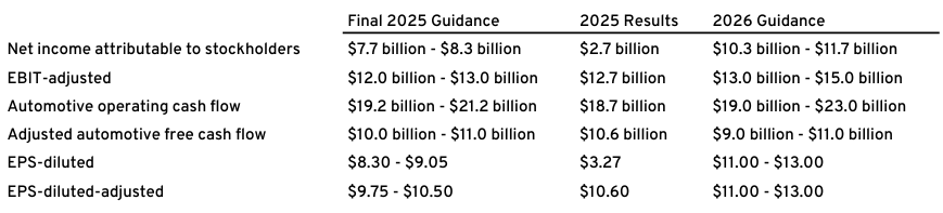 展望未来,通用汽车预计,2026年调整后息税前利润为130-150亿美元,区间中值好于分析师普遍预期的133.9亿美元;预计净利润为103-117亿美元;预计调整后每股收益为11.00-13.00美元,区间中值好于分析师普遍预期的11.73美元。此外,通用汽车董事会宣布季度股息提高0.03美元至每股0.18美元,并批准新的60亿美元股票回购计划。