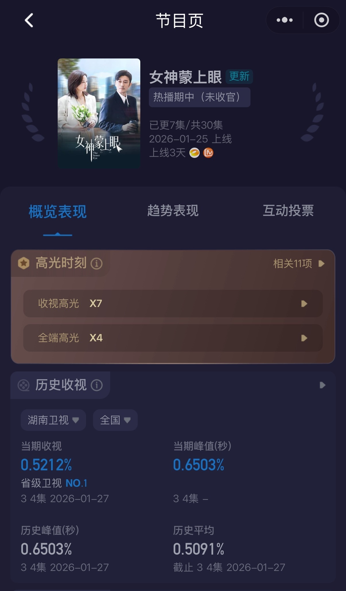 女神蒙上眼湖南卫视开播第二天,酷云峰值突破0.65,继续保持省级卫视第一☝️咱蕾子要奖项有奖项,要演技有演技,要观众缘有观众缘,要杂志有五大满贯,要代言有三顶奢在手,满分女辛芷蕾拿什么输💯