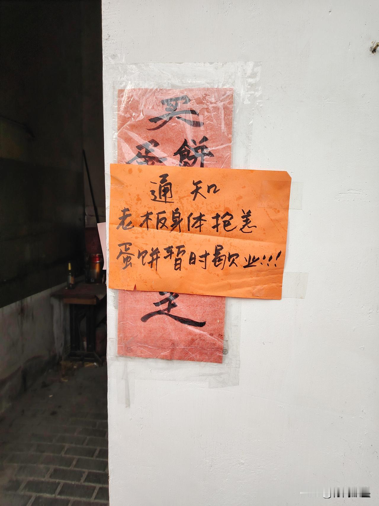 姑苏·菉葭巷15号|美味的香葱鸡蛋饼,墙上一则通知:老板身体抱恙,暂时歇业,吃客别跑空,要耐心等待哟!