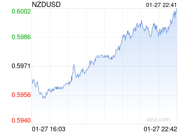 新浪外汇消息2026年01月27日,截至22时41分,外汇市场上新西兰元兑美元汇率突破1新西兰元兑换0.6002美元。涨幅为0.5192%