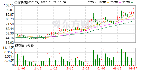 圣晖集成(603163)今日涨停,全天换手率4.91%,成交额4.78亿元,振幅11.50%。龙虎榜数据显示,机构净买入754.36万元,营业部席位合计净卖出310.84万元。