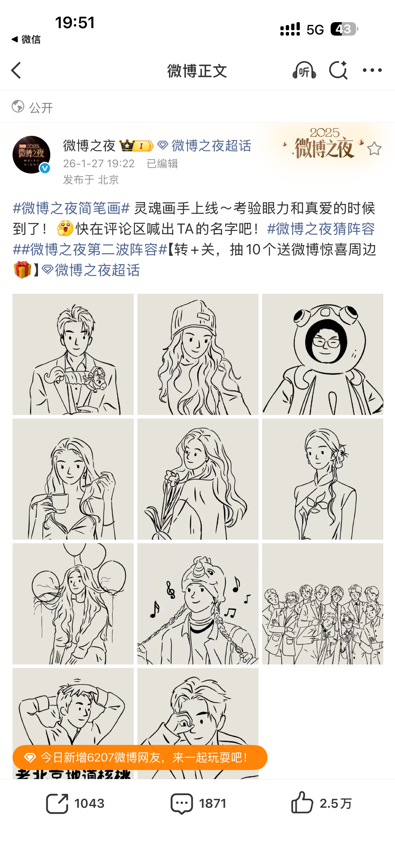 微博之夜你好事做尽又又又更新了新阵容,微博之夜新更新的我都看不过来了,这个剪影大事妙啊!微博之夜你真的是好事做尽放眼望去都是我过去一年嗑过的 CP,感觉是不同组合换个人我都能嗑🤤🤤敖瑞鹏跟李兰迪,周柯宇和陈妍希,还有娜扎、王安宇、文淇、十个勤天,好好好我 CP 都收了,全都在微博之夜聚了!2025微博之夜爆款创作大赛