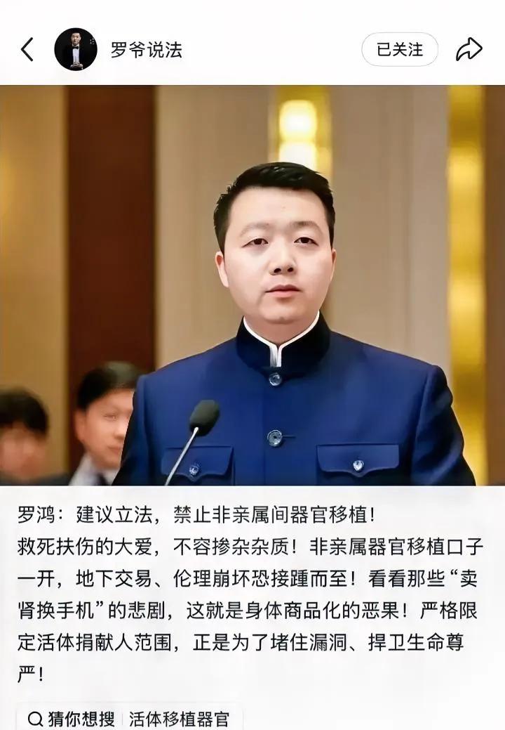 法学界陈枫直接怒怼专家:要是觉得器官移植是好事,专家就该带头 , 倡导的人,就该先做榜样!把全家的器官捐献协议摆出来,亮明态度才是真诚意。谁倡导谁先践行,这不是道德绑架,是最基本的做人准则,光靠嘴皮子喊口号,让别人冲在前头,自己却当看客,就是赤裸裸的耍流氓! 罗鸿:建议立法,禁止非亲属间器官移植! 救死扶伤的大爱,不容掺杂杂质!非亲属器官移植口子一开,地下交易、伦理崩坏恐接踵而至! 美国人体商业化,正是器官移植开闸的终极恶果! 美国把器官移植的口子彻底放开,直接养出了人体商业化的黑色产业链,这就是最血淋淋的反面教材! 没有严格的亲属范围限定,救死扶伤的善举彻底沦为资本谋利的工具,人体器官成了明码标价的商品,连生命都被贴上价格标签,伦理底线被撕得粉碎。 那些失踪的底层民众、被诱骗的弱势群体,全成了这条黑色链条的牺牲品,这就是无底线放开非亲属器官移植的必然结果!罗鸿的立法建议,正是看透了这层恶果,守住亲属移植的底线,才是守住生命的最后一道防线! 非法器官捐献 捐赠器官 器官移植潜规则 器官移植立法 合法器官移植 器官移植专家