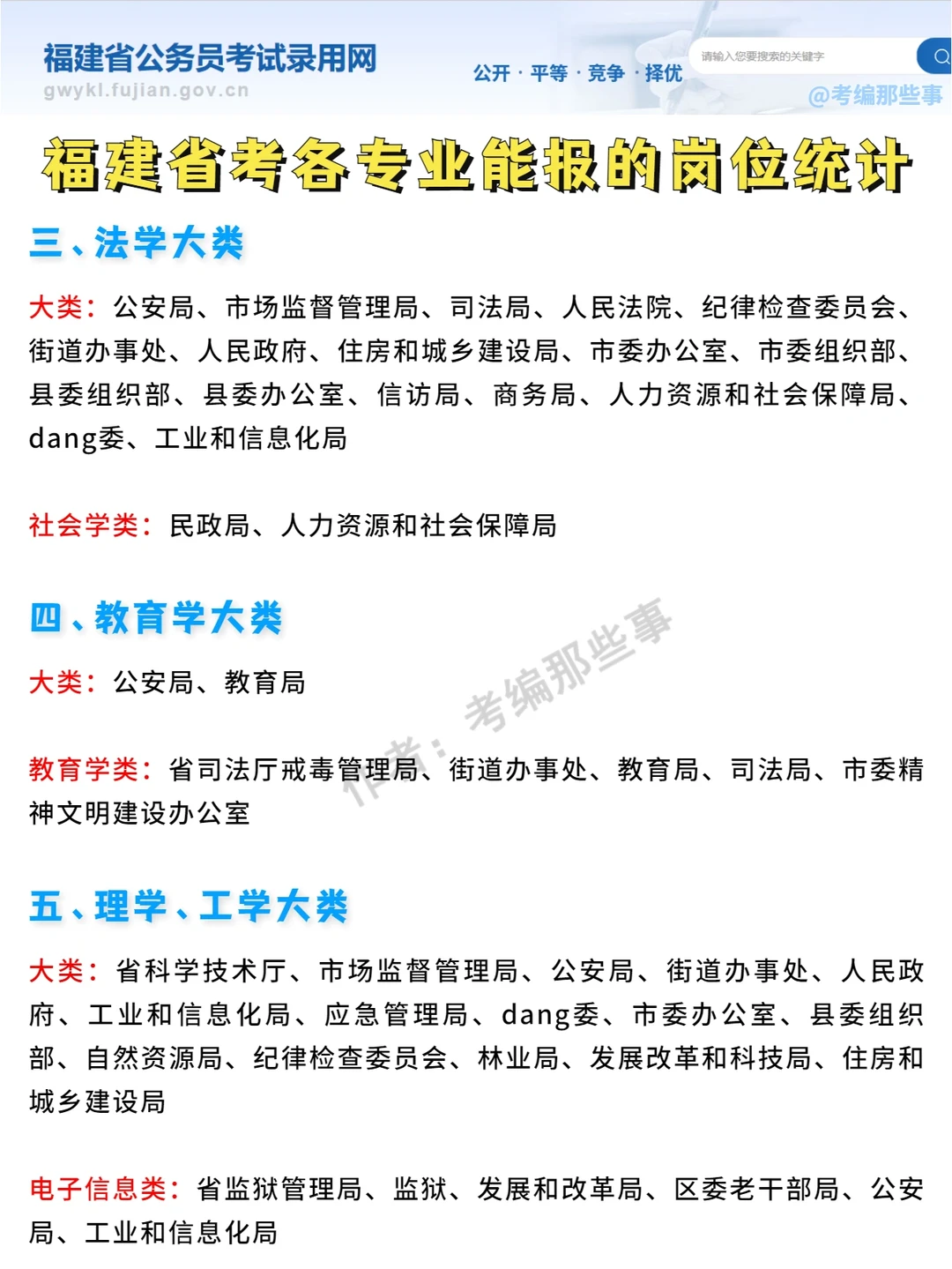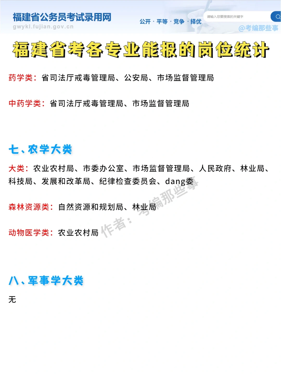 ➡️➡️福建省考是按事业单位的专业目录进行分类,一共有八大类: