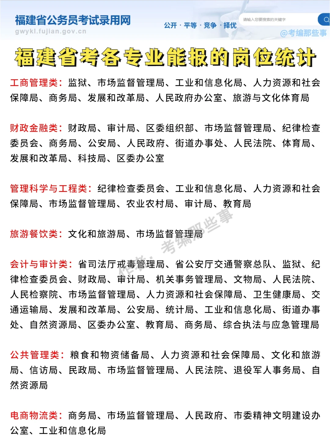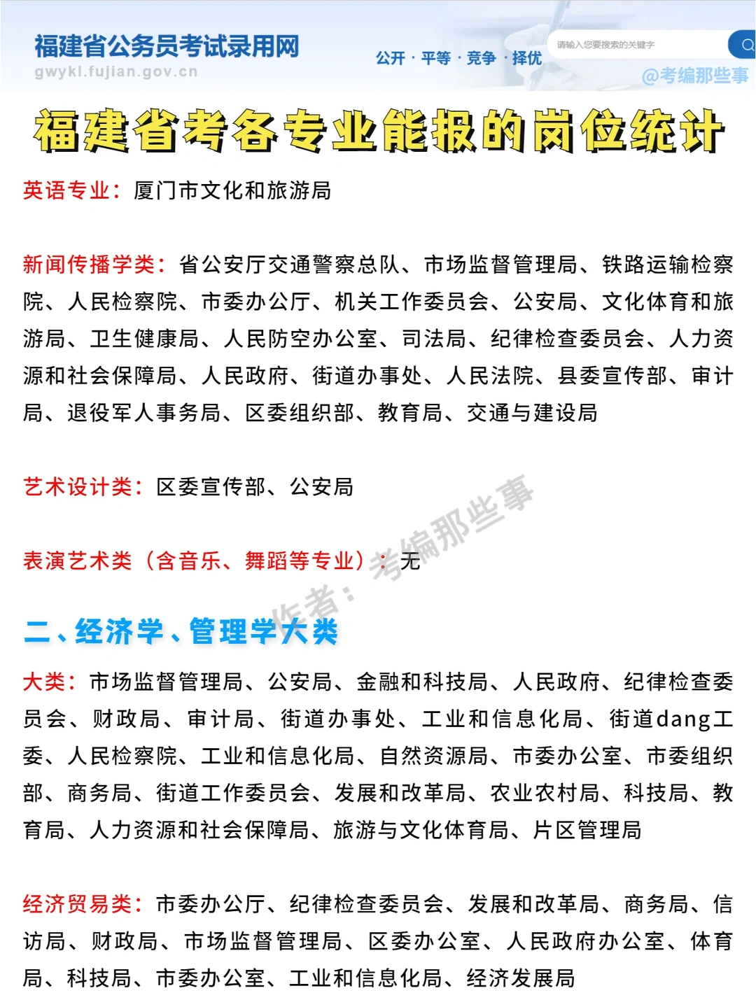 ➡️➡️根据2022福建省考岗位、专业目录统计,具体专业和岗位要求见岗位表,以下数据不包含参照管理人民团体和群众团体、参照管理事业单位!!