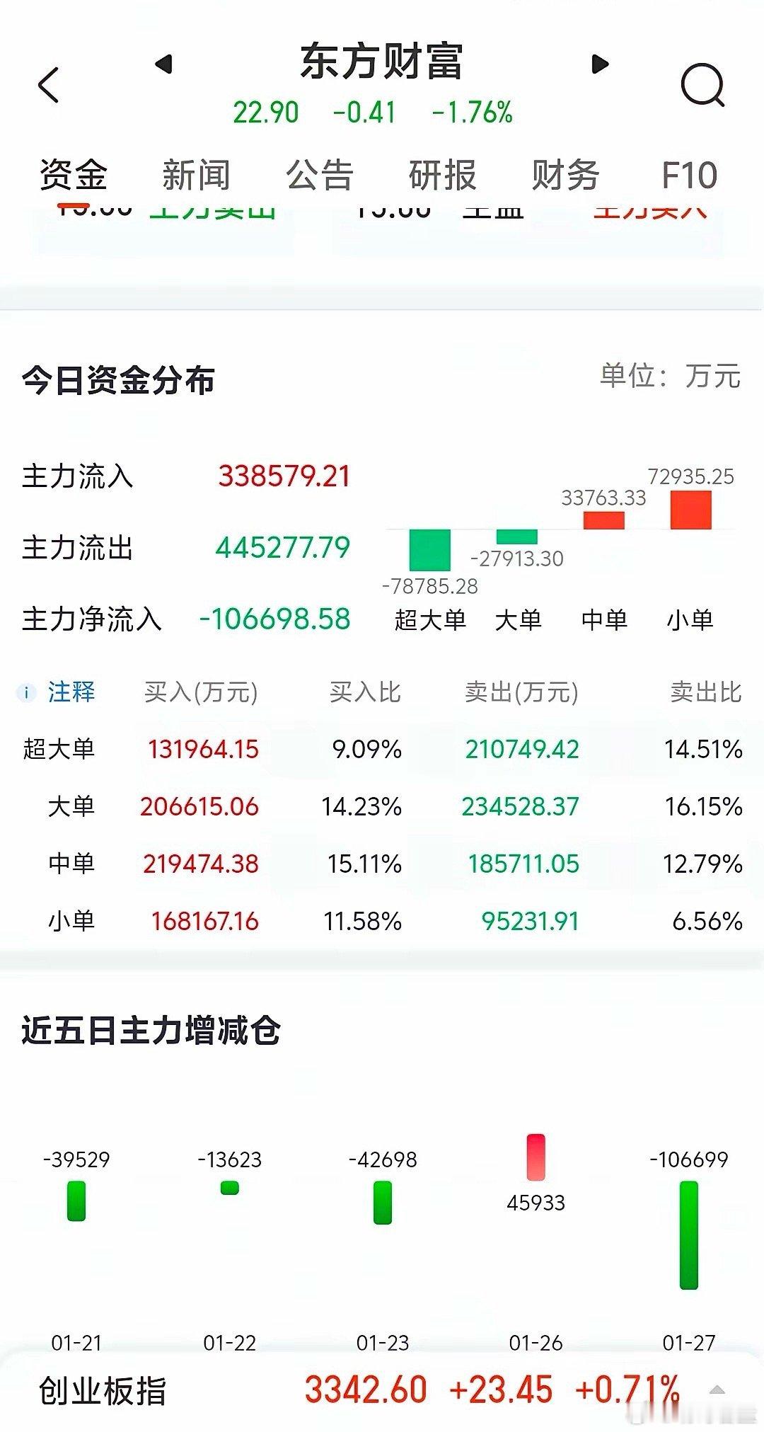券茅东方财富300059最近一段时间,对于持股券商板块的投资者来说,的的确确就是一种煎熬。为什么这么说呢?众所周知,如今是被投资者们公认的牛市行情,但做为旗手的券商板块不涨反跌,这种反其道而行之的走势,无疑是对投资者信心的最大打击。特别是做券商板块中的券茅东方财富,今天再次收跌1.76%报收22.90元/股,可以说它九连跌也不为过。主力资金净卖出10亿多元。主力资金的疯狂出货,即使昨日是净流入,但我们是否可以认为是主力在诱多。券商一涨就是各种打压,直喊不要“疯牛”,如今跌成这样,却没人为券商这种病态发声。
