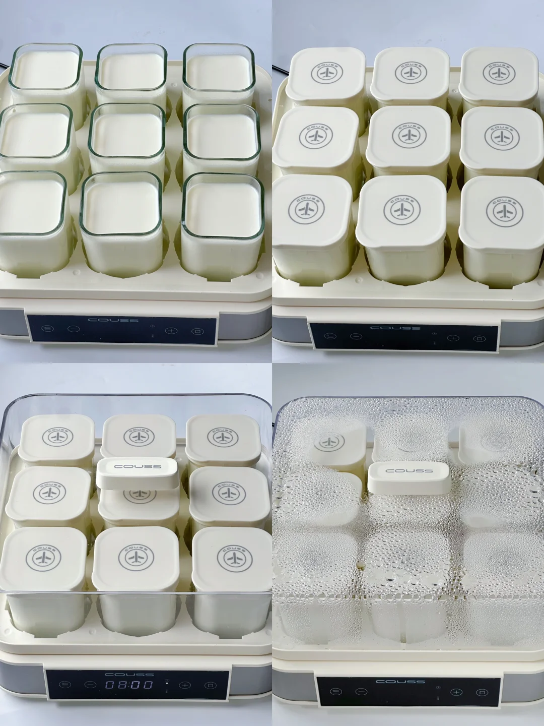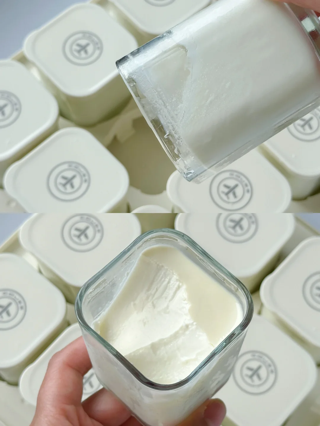 【食材】 纯牛奶 1000ml 淡奶油 300g 奶粉 50g 细砂糖 50g 炼乳 35g 酸奶菌粉 2g 【做法】 1️⃣所有工具放入开水中煮一下进行杀菌 2️⃣除酸奶菌外,所有原材料混合后,加热至砂糖完全融化。 3️⃣奶液室温放凉降温至42度左右,加入2包酸奶菌,搅拌均匀,酸奶菌容易结块,尽量搅散。过滤1-2次,倒入容器杯,盖上盖子。 4️⃣卡士105酸奶机底盘放入50ml水、温度设置42度、发酵时间10-12小时。发酵好就可以直接吃啦,也可以放入冰箱冷藏口感更佳。