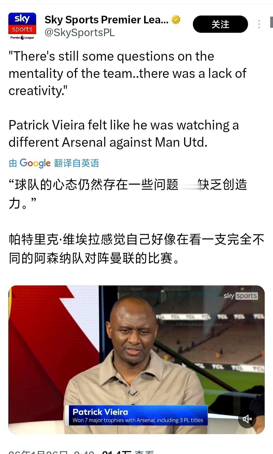 2比3,补时被曼联翻盘,枪手把榜首优势一口气吐回4分。 主场金身破得脆:领先不会守,扳平不会冲,最后被世界波一脚踹翻。 问题明摆着:球权倒来倒去,中路没人敢塞刀。 厄德高节拍器当得稳,可对面一缩,他就减速,身体挤不过,直塞打不穿,全等萨卡边路神仙球。 夏天砸6700万买的埃泽,爆点属性英超验过货,却按在板凳或拉边当工兵。 上来那十几分钟,带球真能搅,可体系优先回防,敢突也不敢丢,魔力瞬间熄火。 阿尔特塔把防守算盘拨得精,进攻却像背课文,对手早把答案抄好。 想拿冠军,就得有人敢在中路玩火,而不是落后十分钟才想起“魔法”。 下一场再这么温吞,曼城连这4分都懒得留。