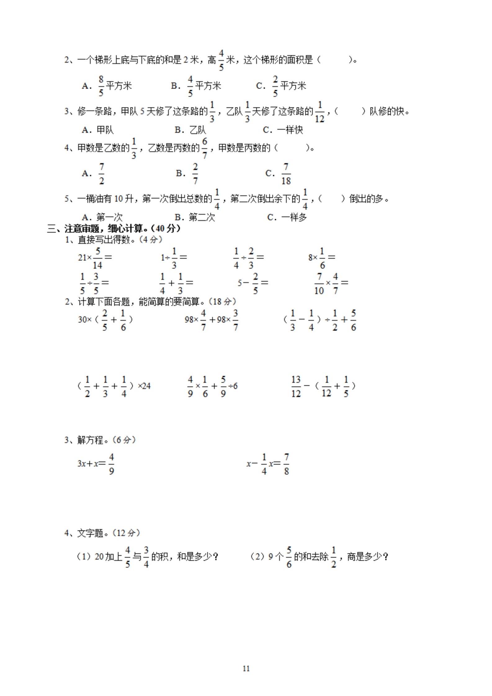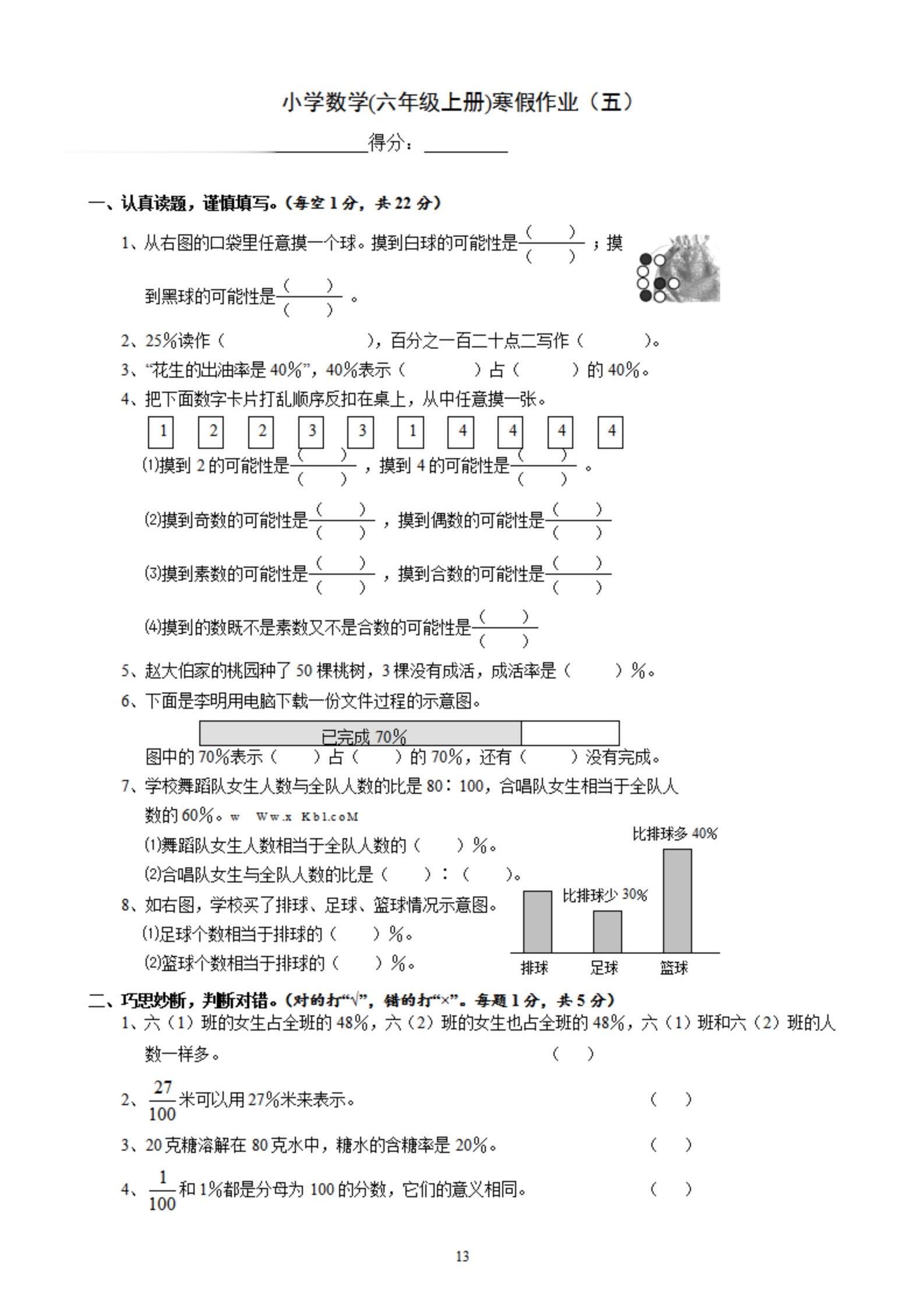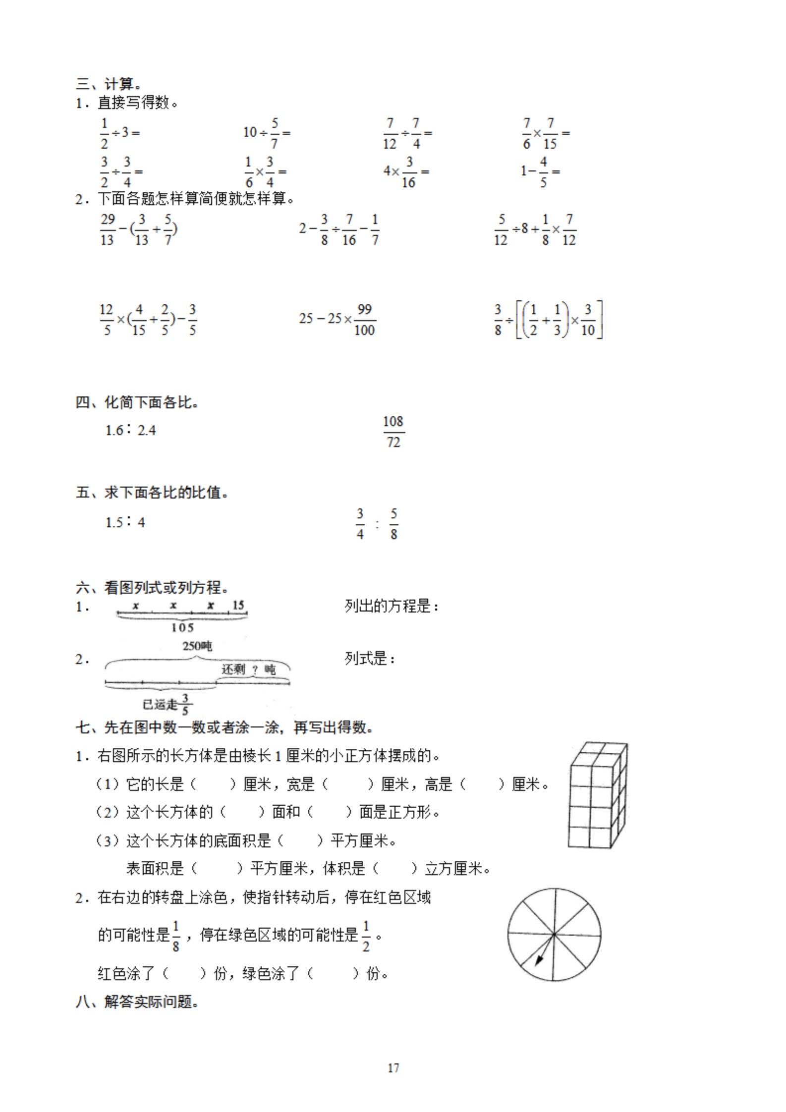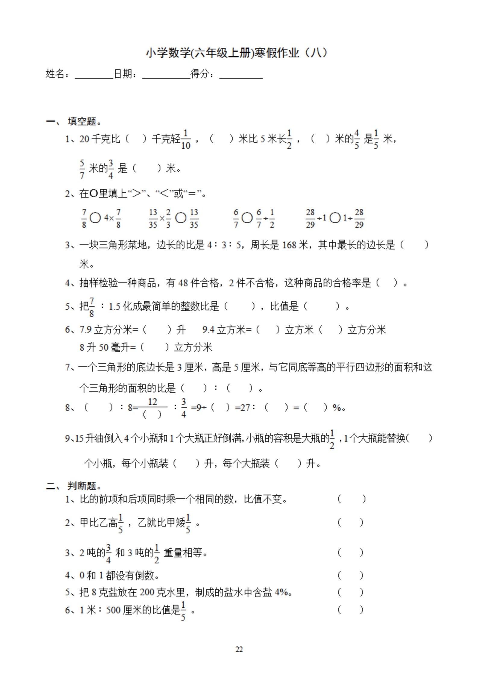 2026年春小学六年级数学寒假作业。 有需要可以自行下载打印出来。 ...