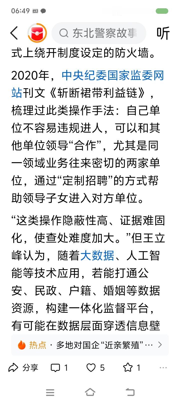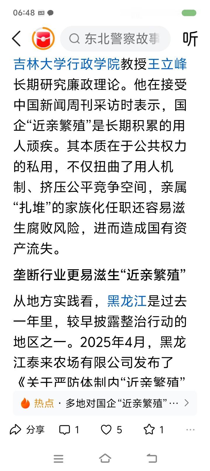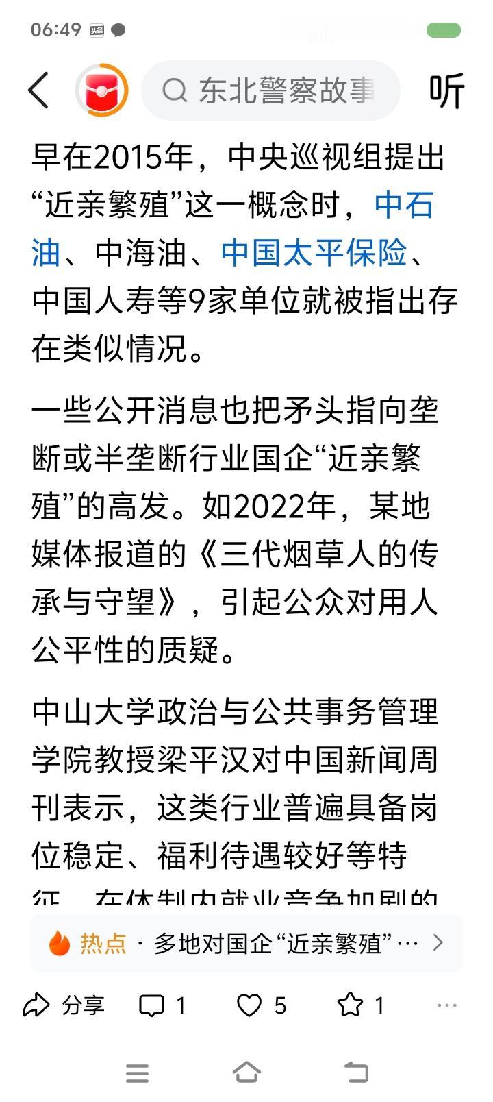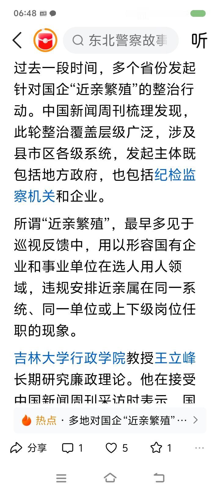 挖出企事业单位“近亲繁殖”的根源—— 据报道,一些地方开始整顿金融、电力、烟草、石油等领域的“近亲繁殖”问题。“近亲繁殖”不仅是公权私用、违背公平,而且会增加国有资产流失的风险。一些企业在招聘条件上就为特定人群设置,比如在专业、院校、户籍、性别、任职年限等方面压缩应聘范围。2024年,贵州某地烟草招客户经理,条件是:体育教育、运动训练专业;特长生、足球国家二级运动员优先。外界质疑后,人事部门仍宣称招聘过程合规。 点评: “近亲繁殖”最严重的危害是固化阶层,阻碍社会良性循环,动摇人民群众对社会的信心。任贤使能,是中国历史的一大传统。“上品无寒门,下品天士族”,什么后果? 另外,警惕一些人形成家族势力、利益链,利用祠堂、宗教、民间信仰等干扰地方事务。