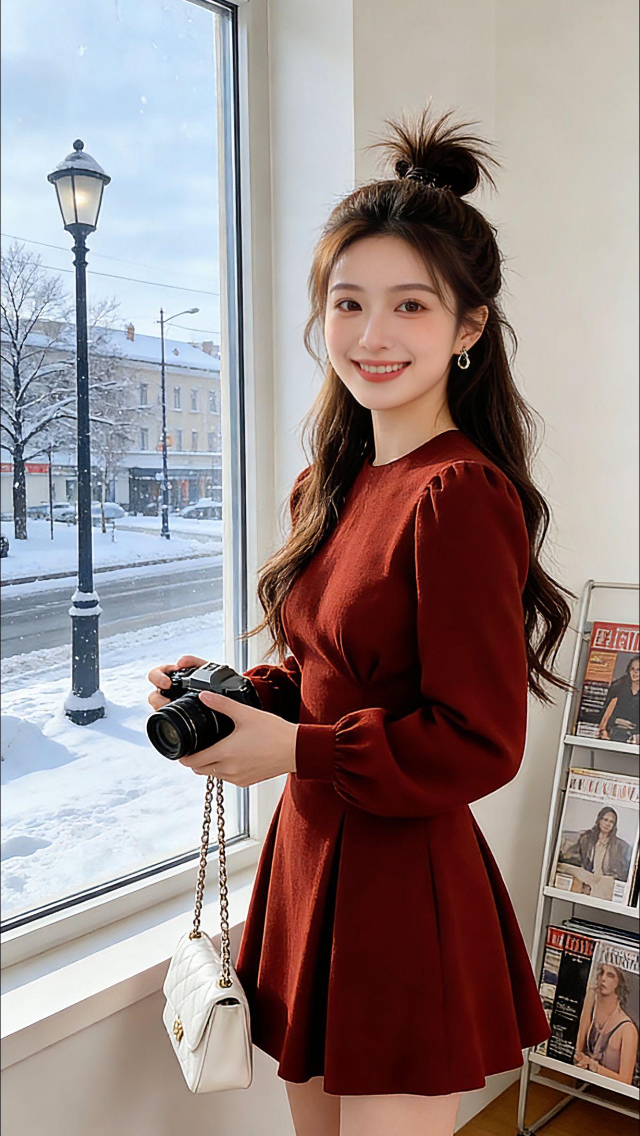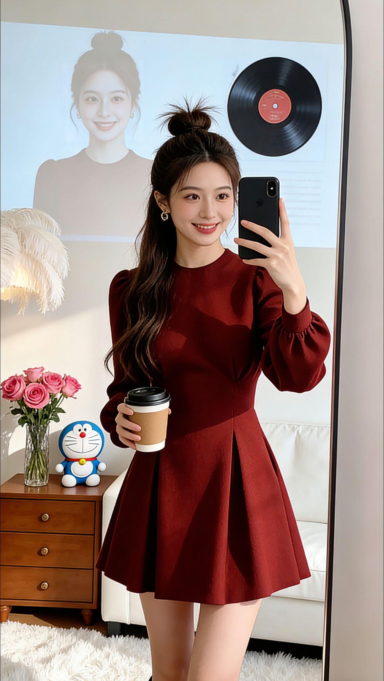 Danny的冬日新年战袍太戳心!镜前自拍配咖啡,窗边持相机定格雪景,指着模特同款红裙的瞬间,富家千金气质直接拉满✨ 红色调衬得肤色超亮,半扎丸子头更添甜美。 这款2026新款红裙太懂女生,修身收腰版型贴合身形,泡泡袖藏肉又显灵动,短裙设计利落又减龄。不管是新年赴约还是日常出行都适配,轻松穿出高级感,谁穿谁是氛围感美女~ 新年就要红 我决定今年开春这么穿 好看的衣服不分年龄 新年战袍我先手搓上了